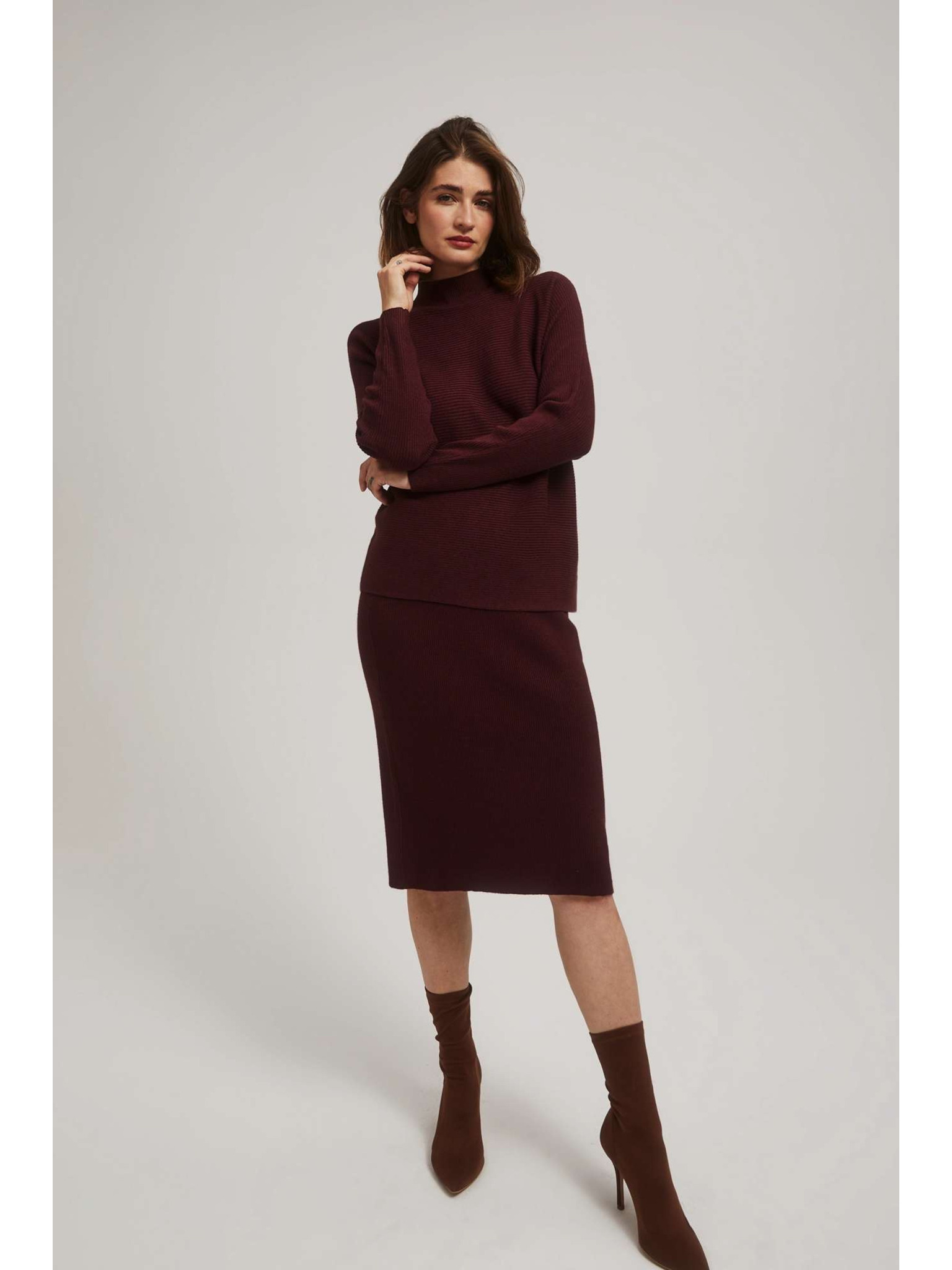 Uska kestenjasta pletena suknja Moodo
