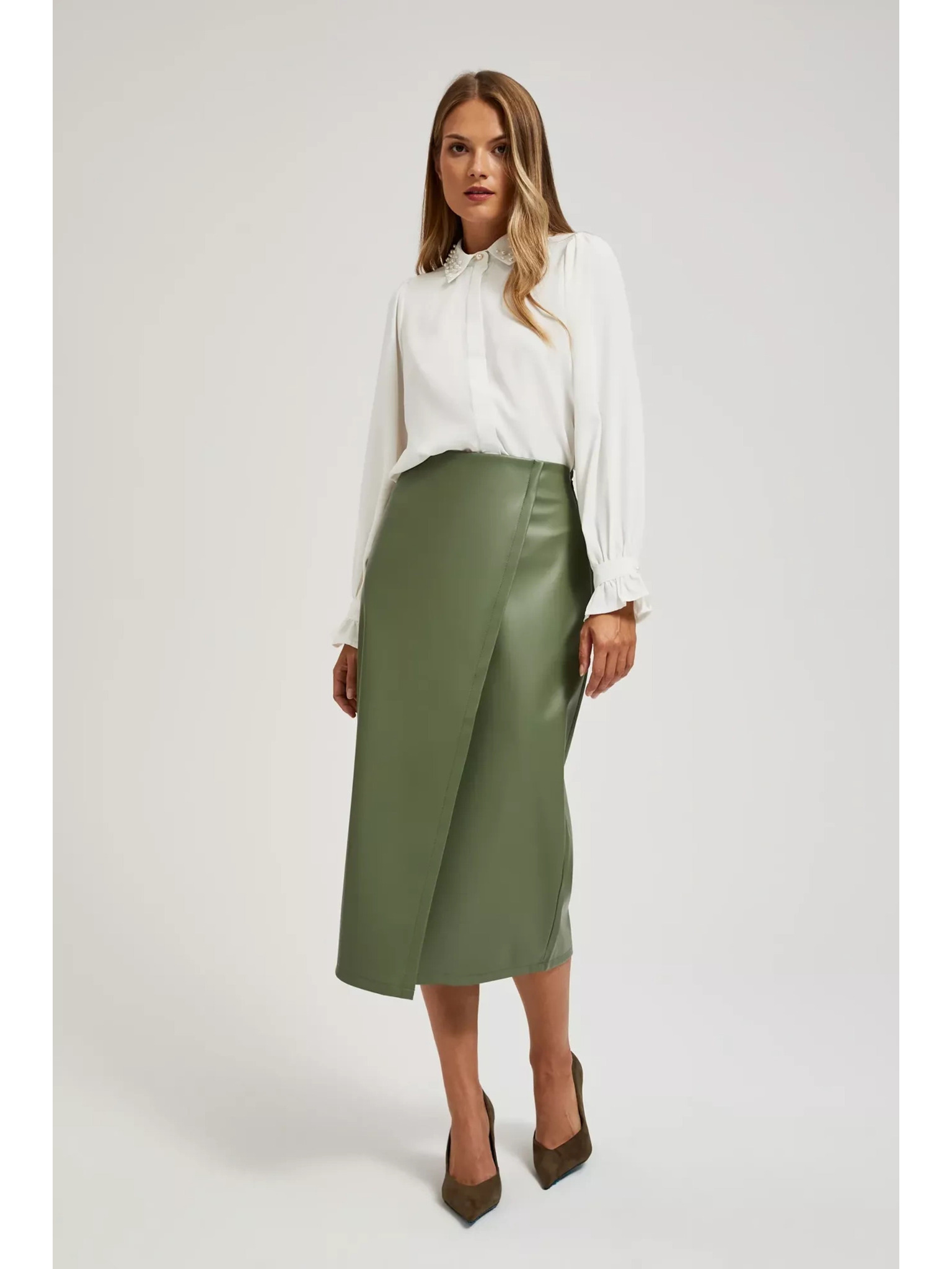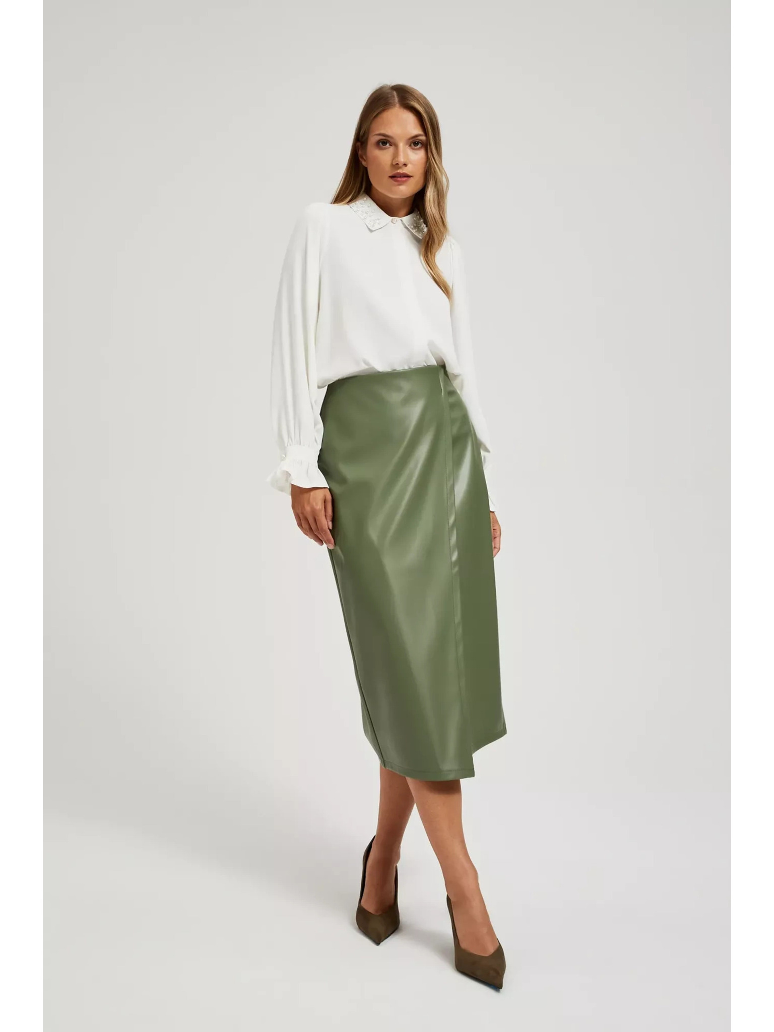 Kaki ženska suknja od umjetne kože na veze ZOOT.lab Ryoko