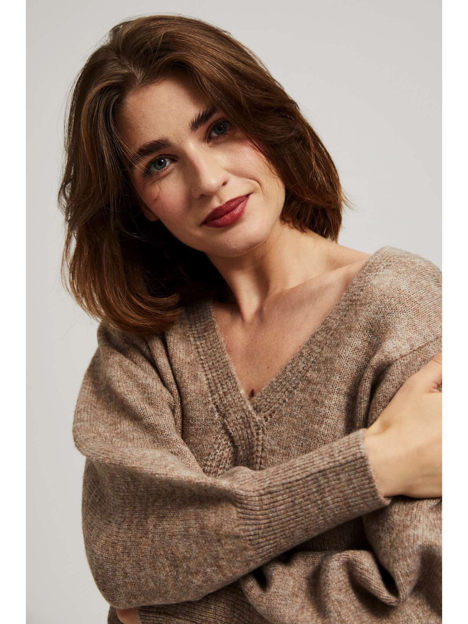 Bež ženski džemper s V-izrezom Moodo