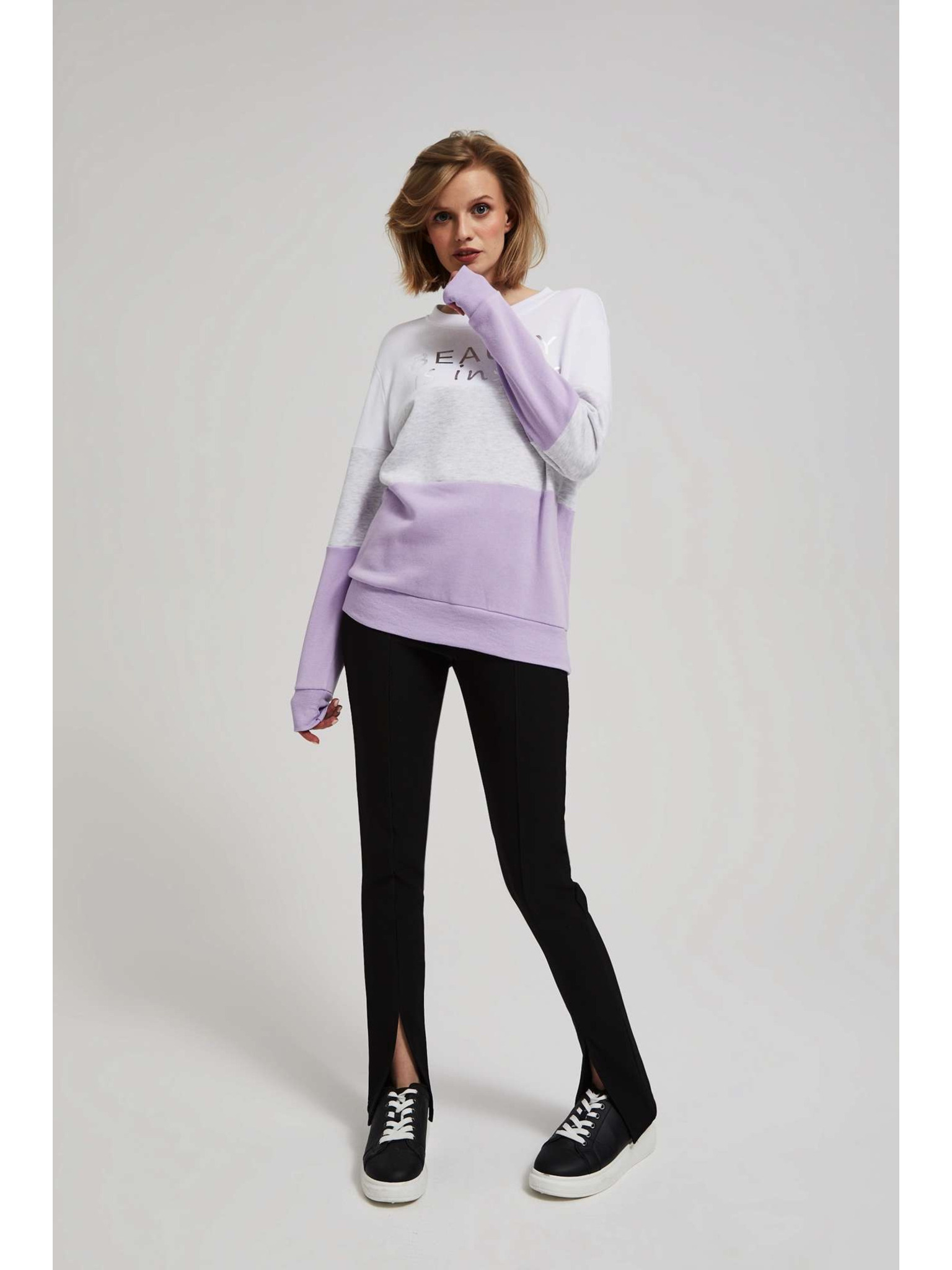 Lila ženski hoodie s prorezima Moodo
