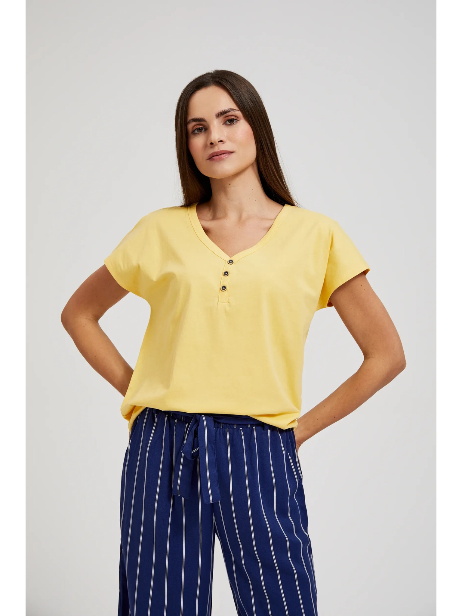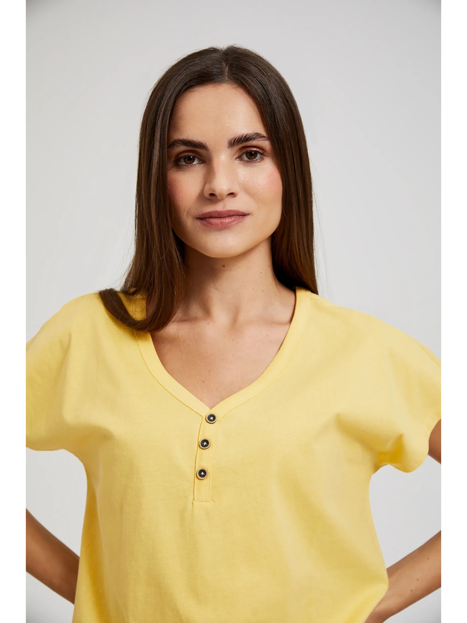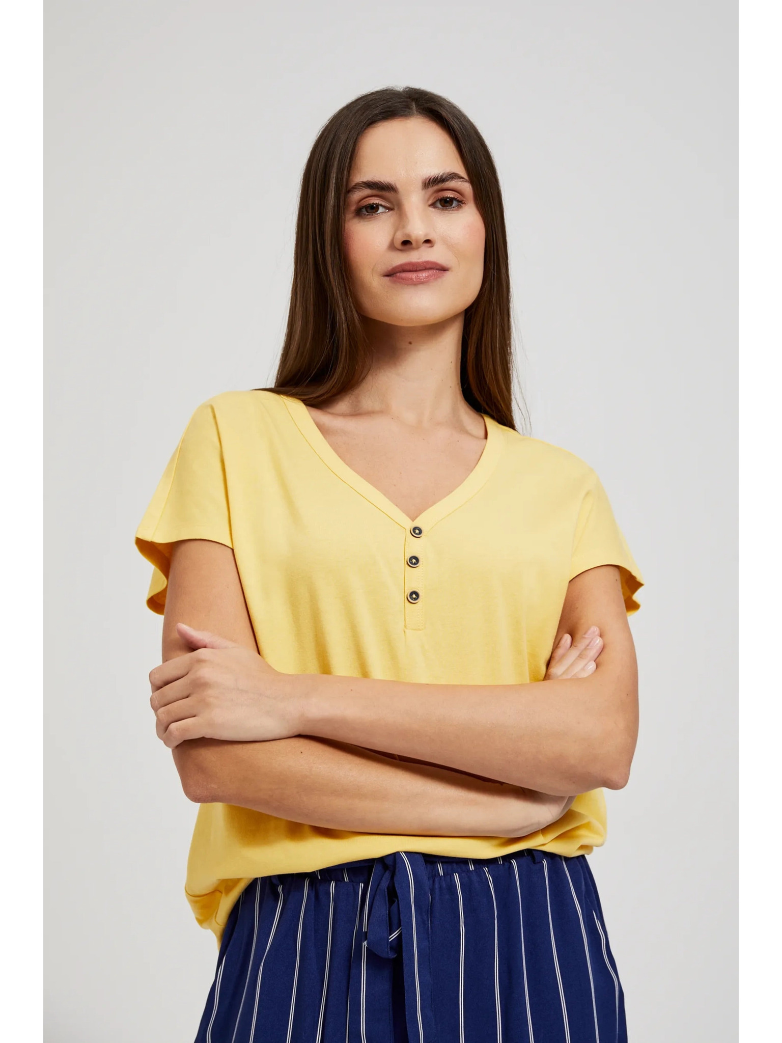 Žuta majica s gumbima na izrezu Moodo