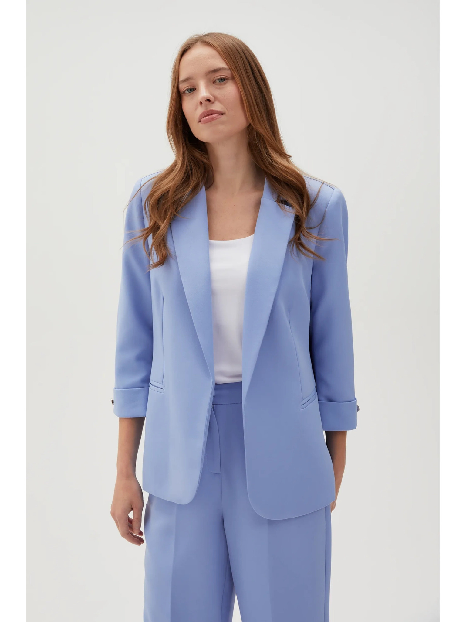 Plava lanena jakna s 3/4 rukavima Moodo