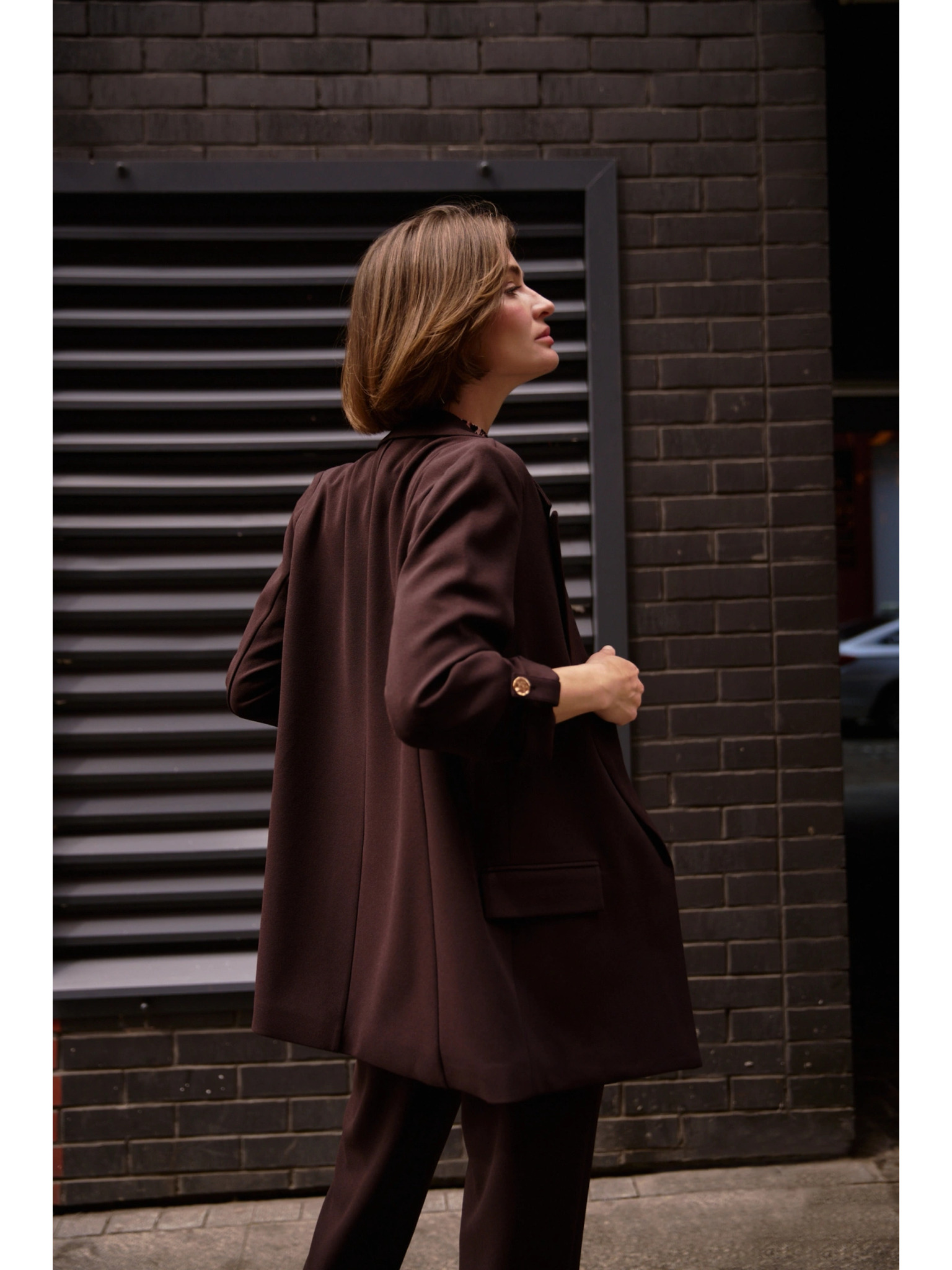 Uski kepani sako sa sužavanjem u struku Marks & Spencer smeđa
