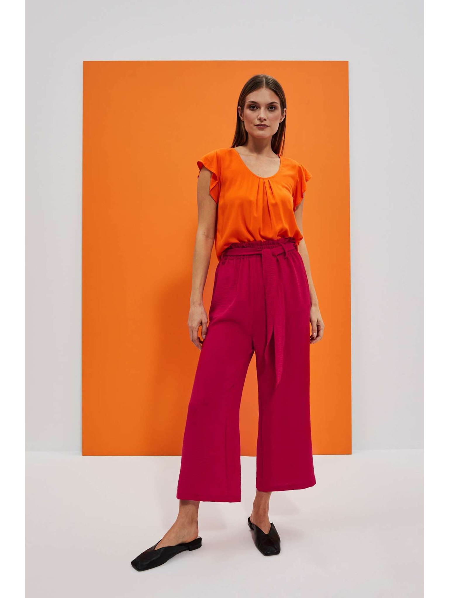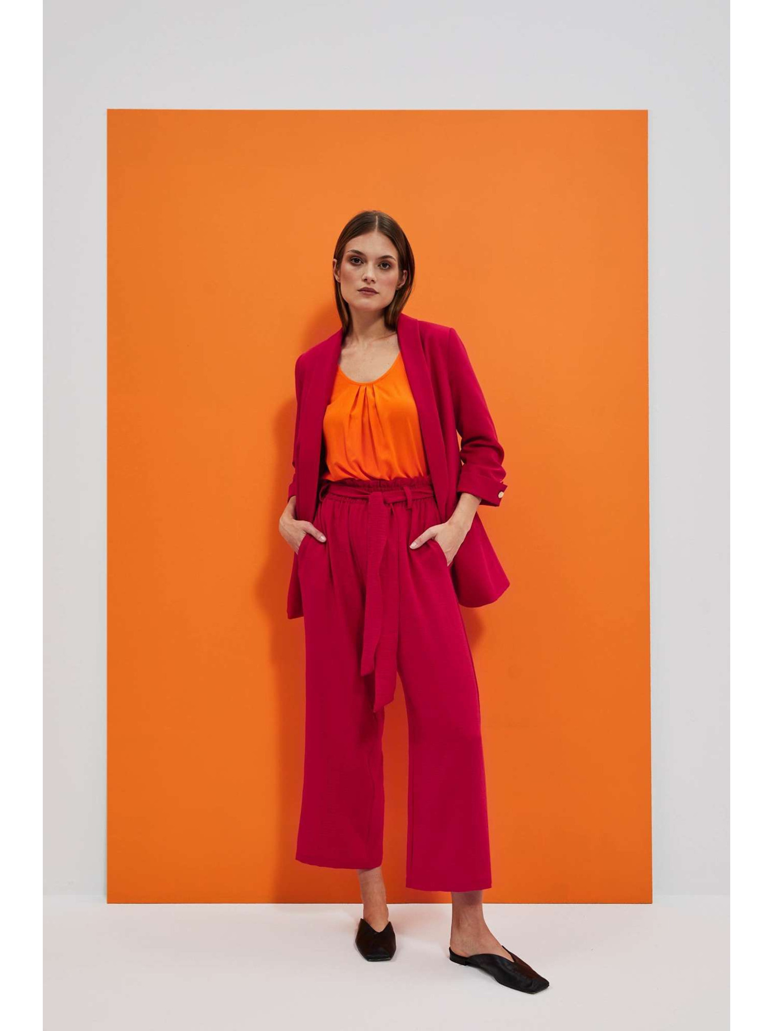 Bordo hlače s teksturom i pojasom Moodo