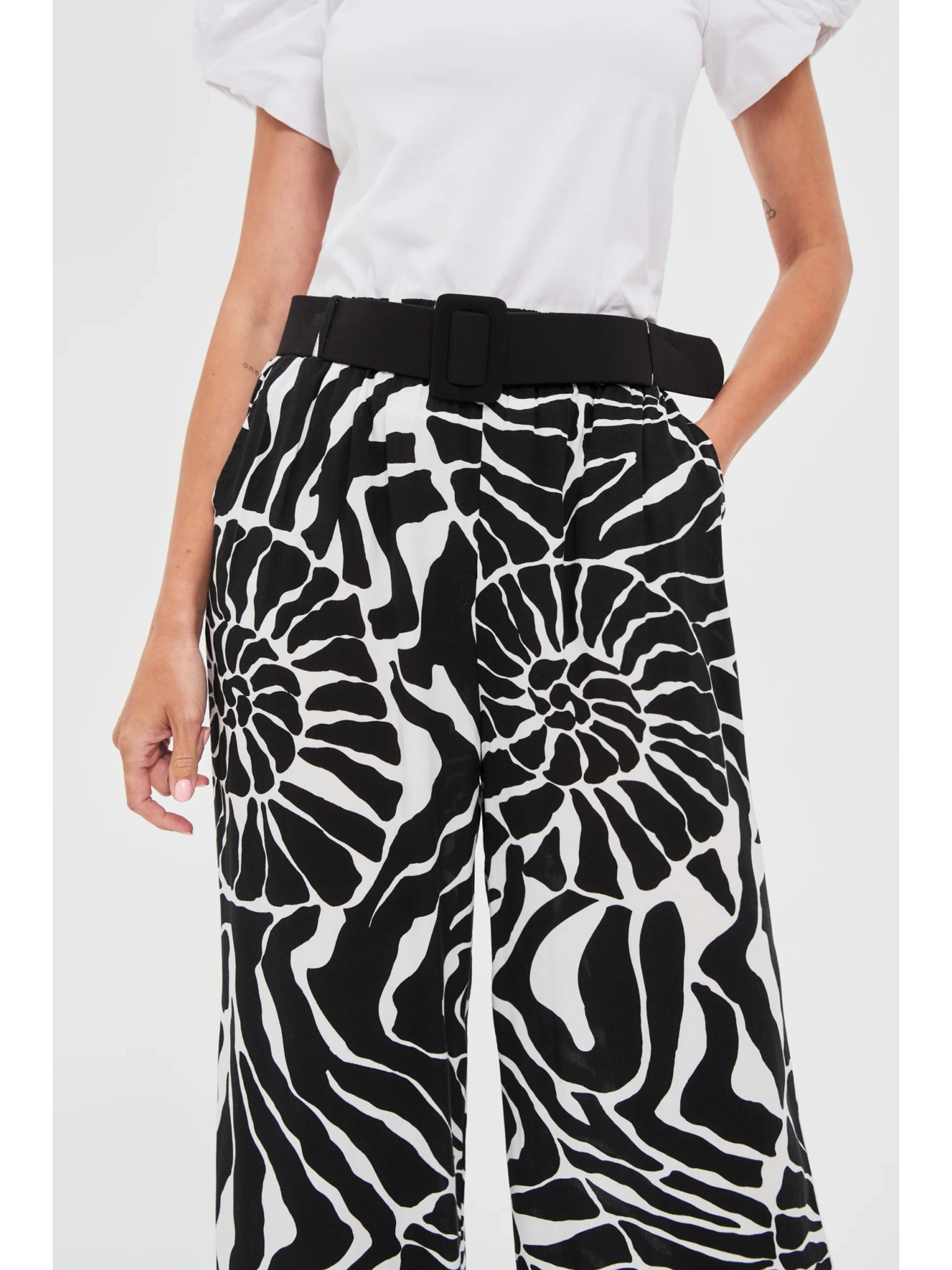 Bijelo-crne ženske hlače s uzorkom ORSAY