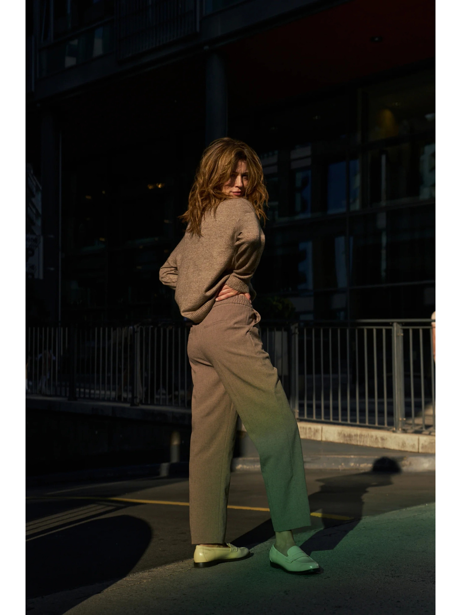 Nabrane hlače širokih nogavica s visokim udjelom pamuka Marks & Spencer smeđa