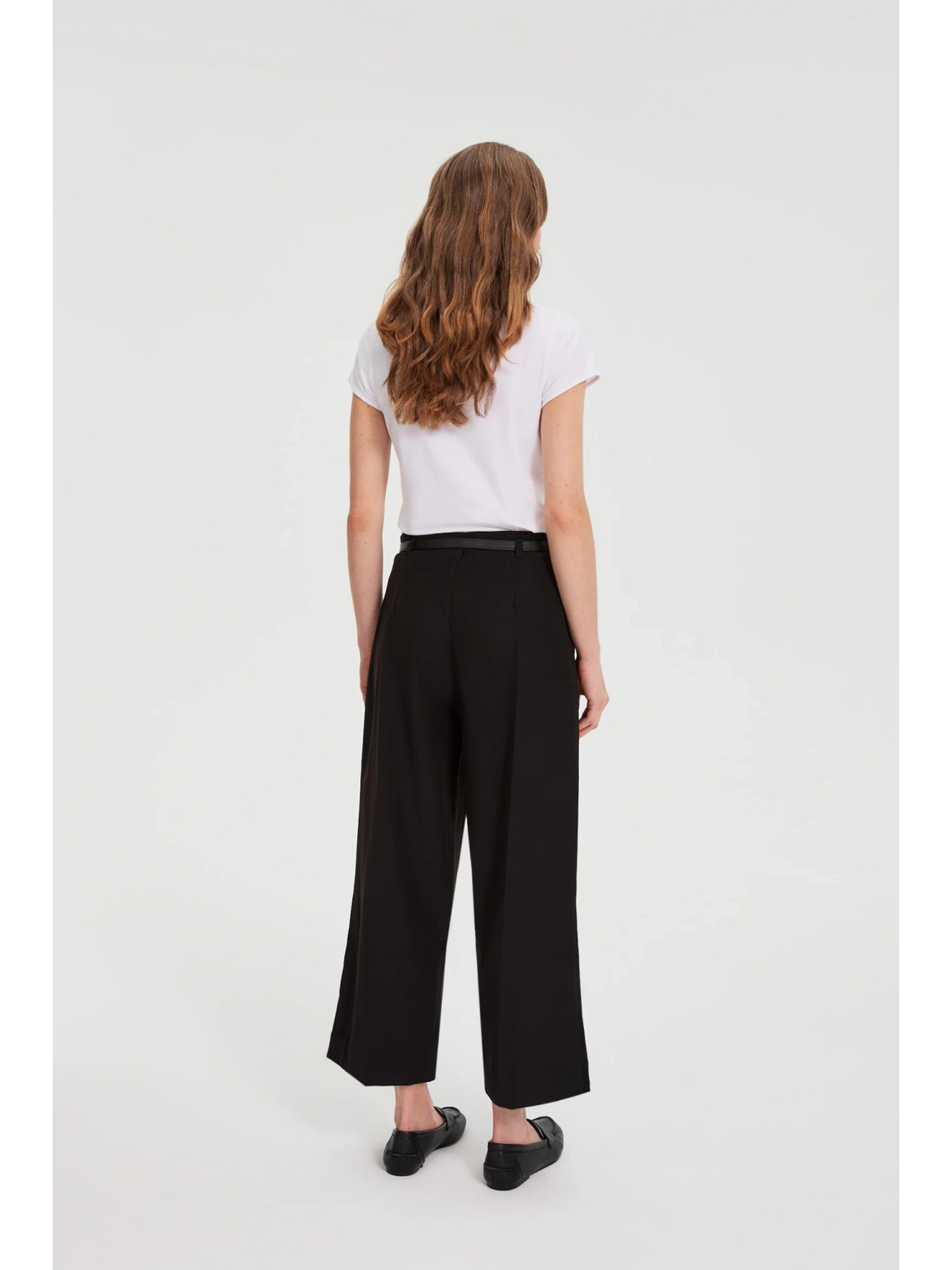 Crne hlače s širokim nogavicama od rebrasto strukturiranog materijala Moodo