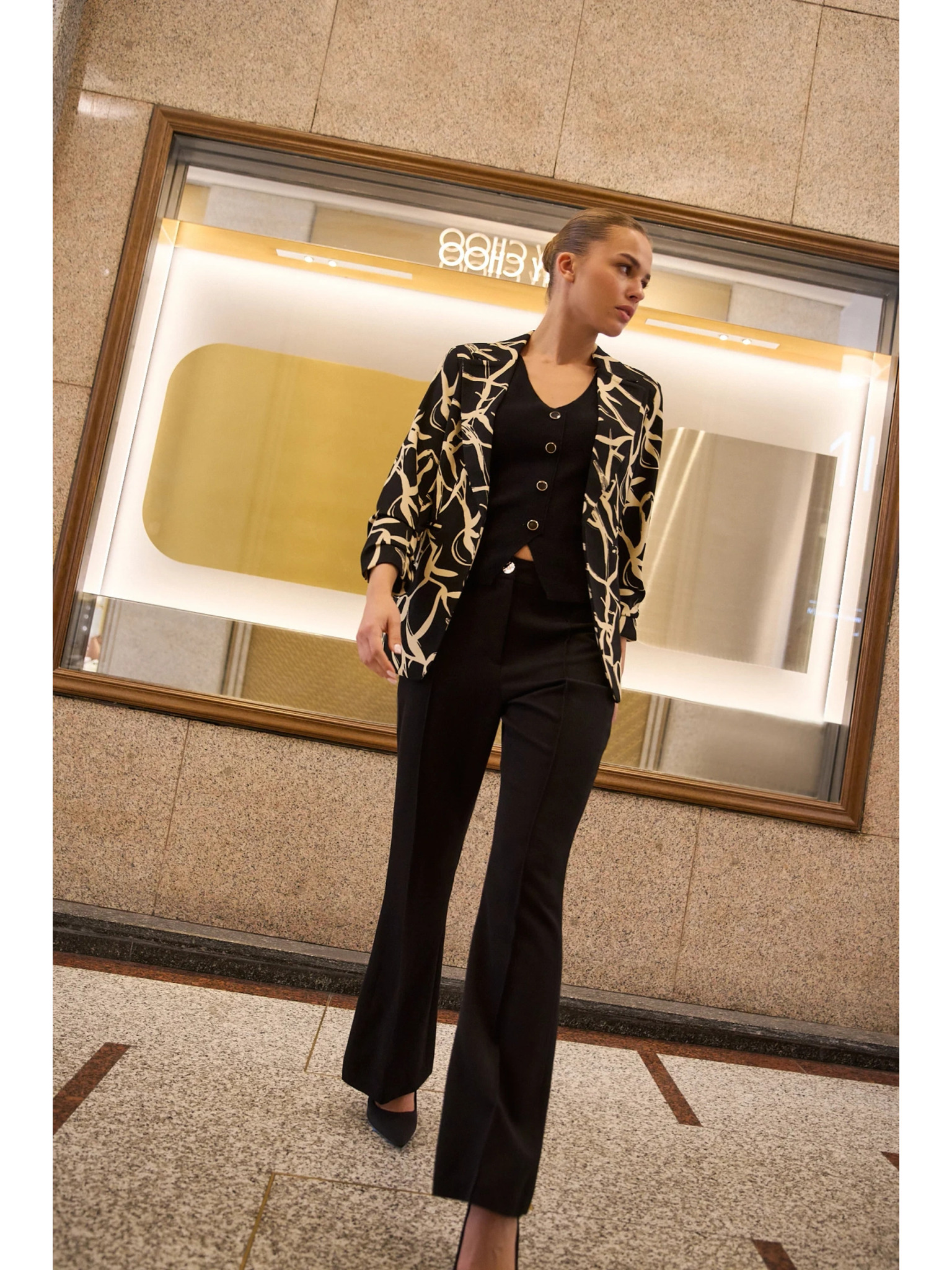 Bijelo-crne ženske hlače s uzorkom ORSAY