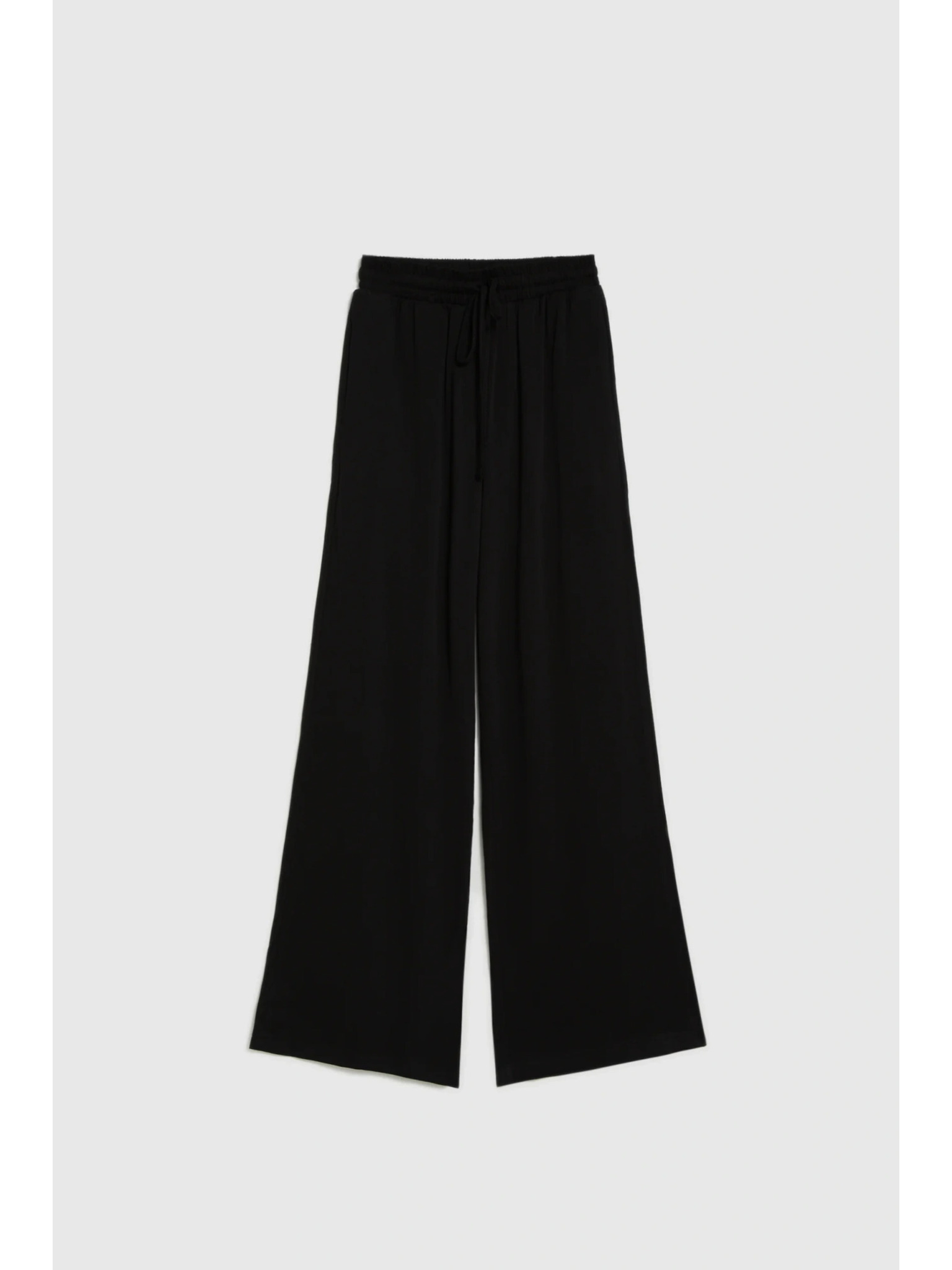 Crne hlače s širokim nogavicama od rebrasto strukturiranog materijala Moodo