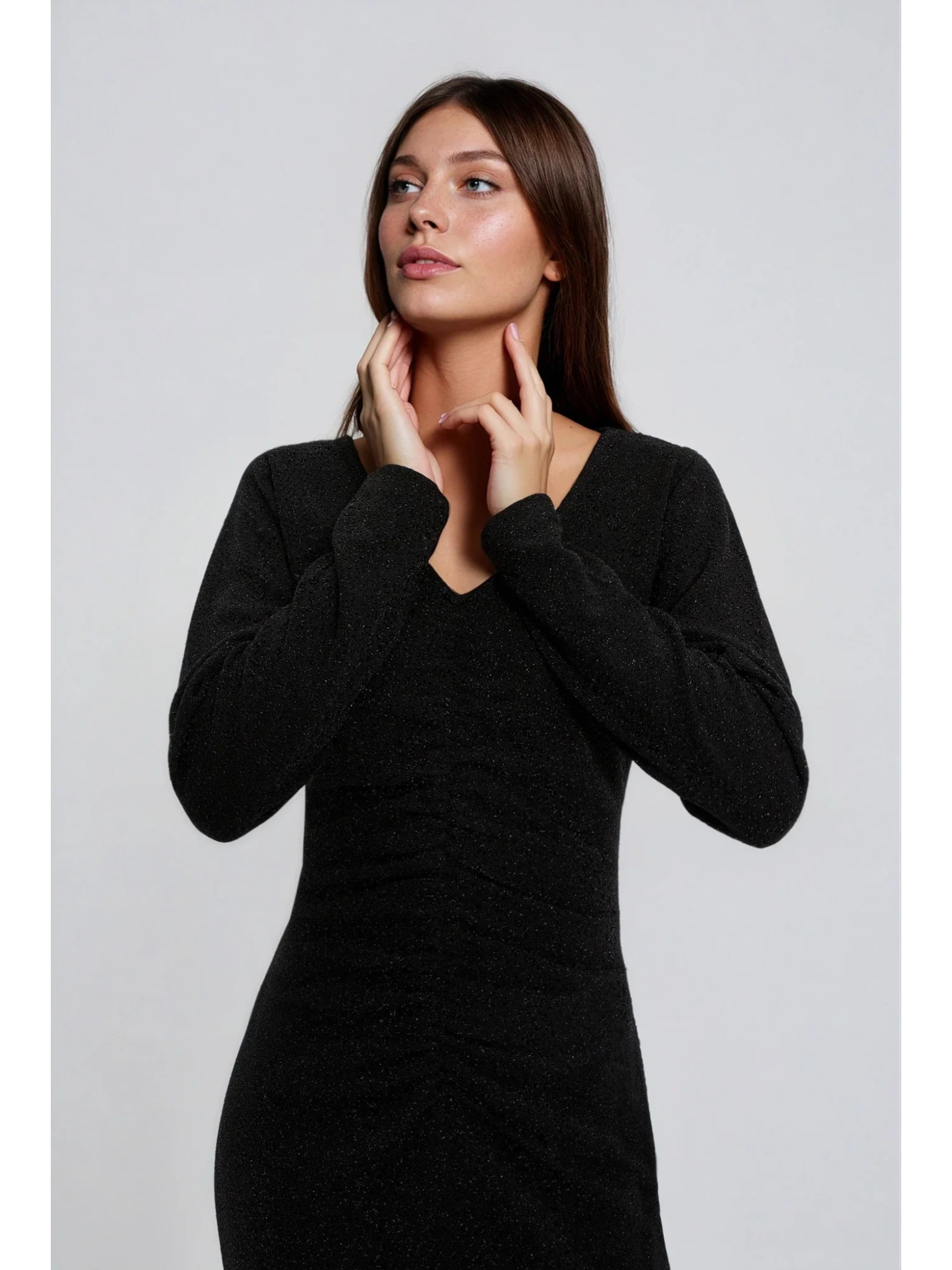 Sjajna duga haljina s dekolteom i dugim rukavima - crna Numoco NELA