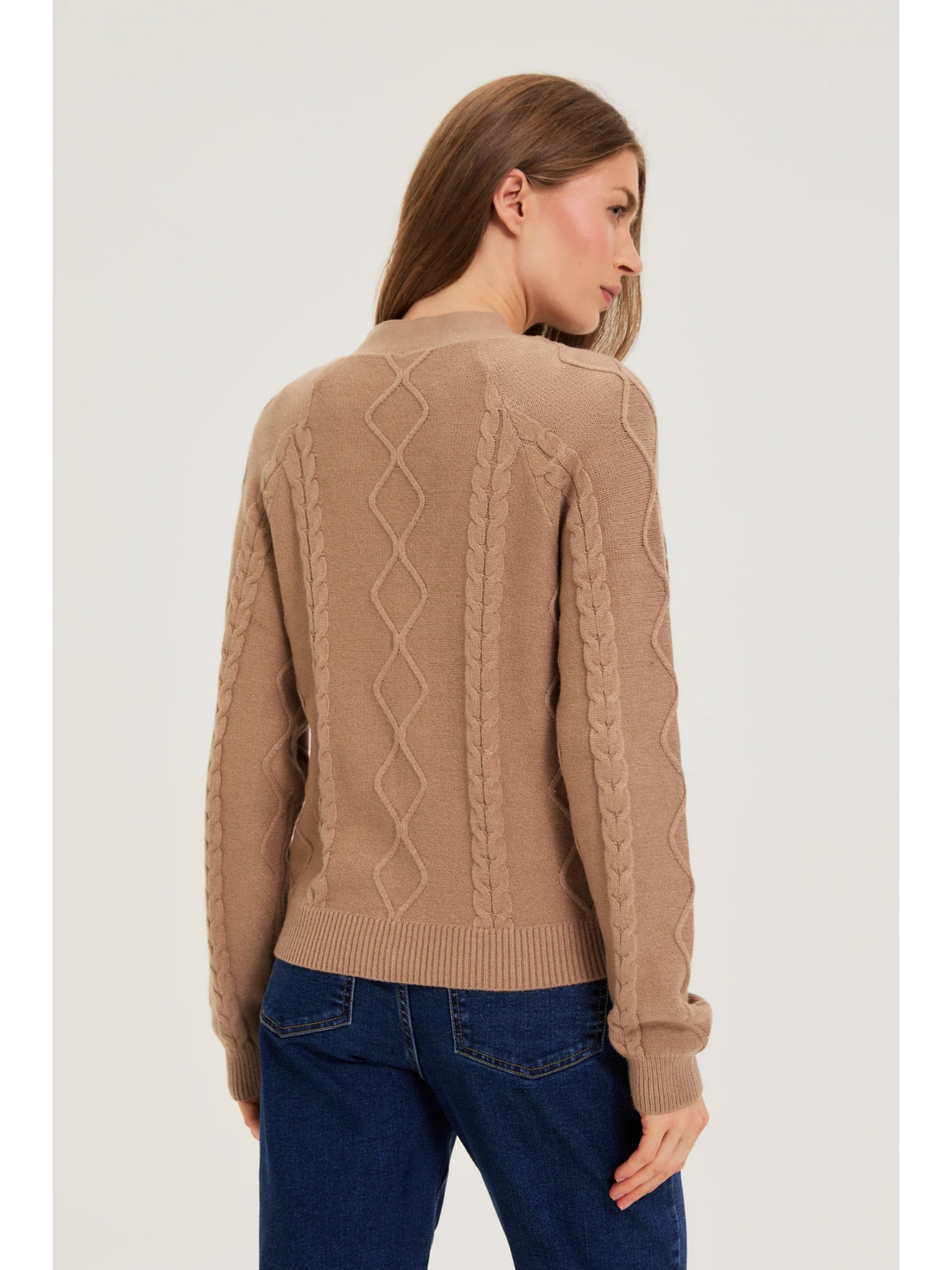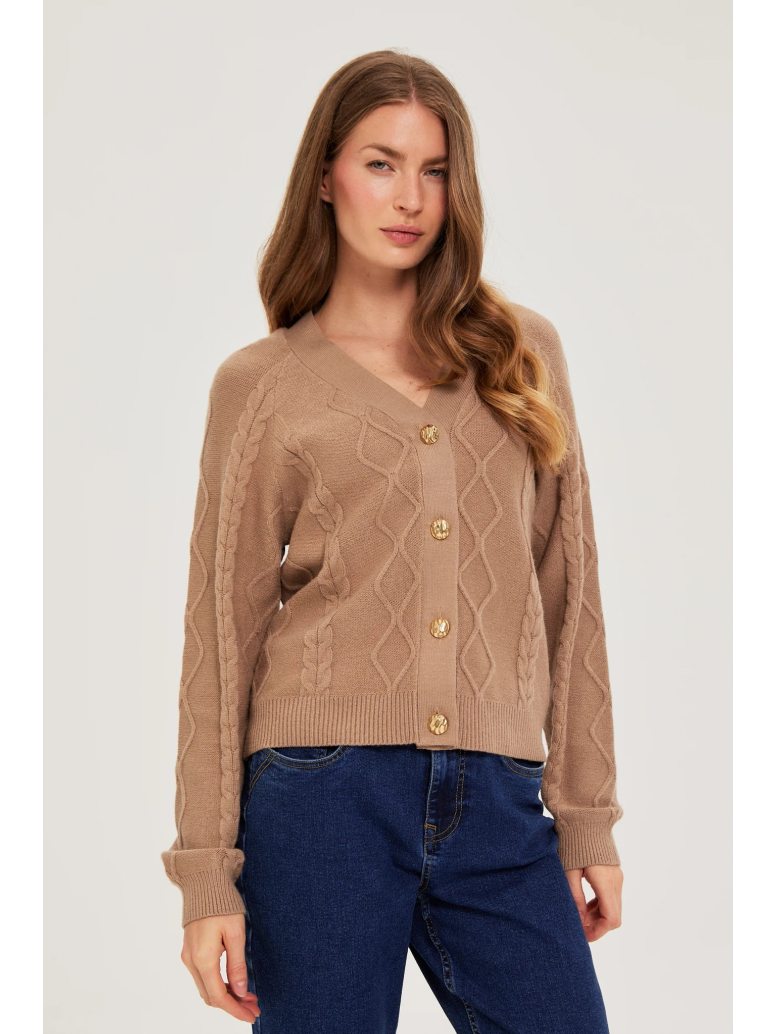 Smeđi kardigan s dekorativnim gumbom Moodo