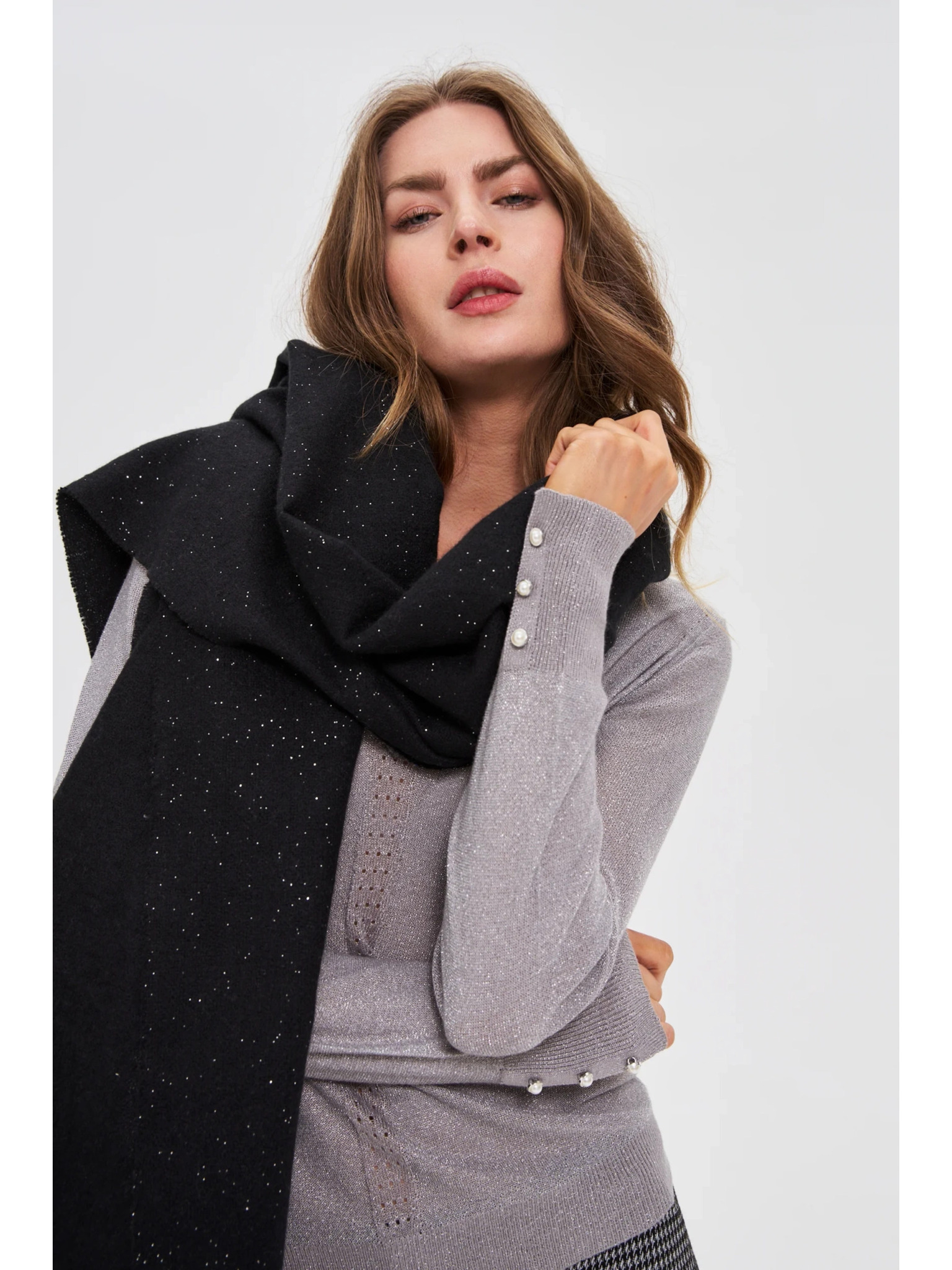 Crni šal u kocki s metalnom nitkom Moodo