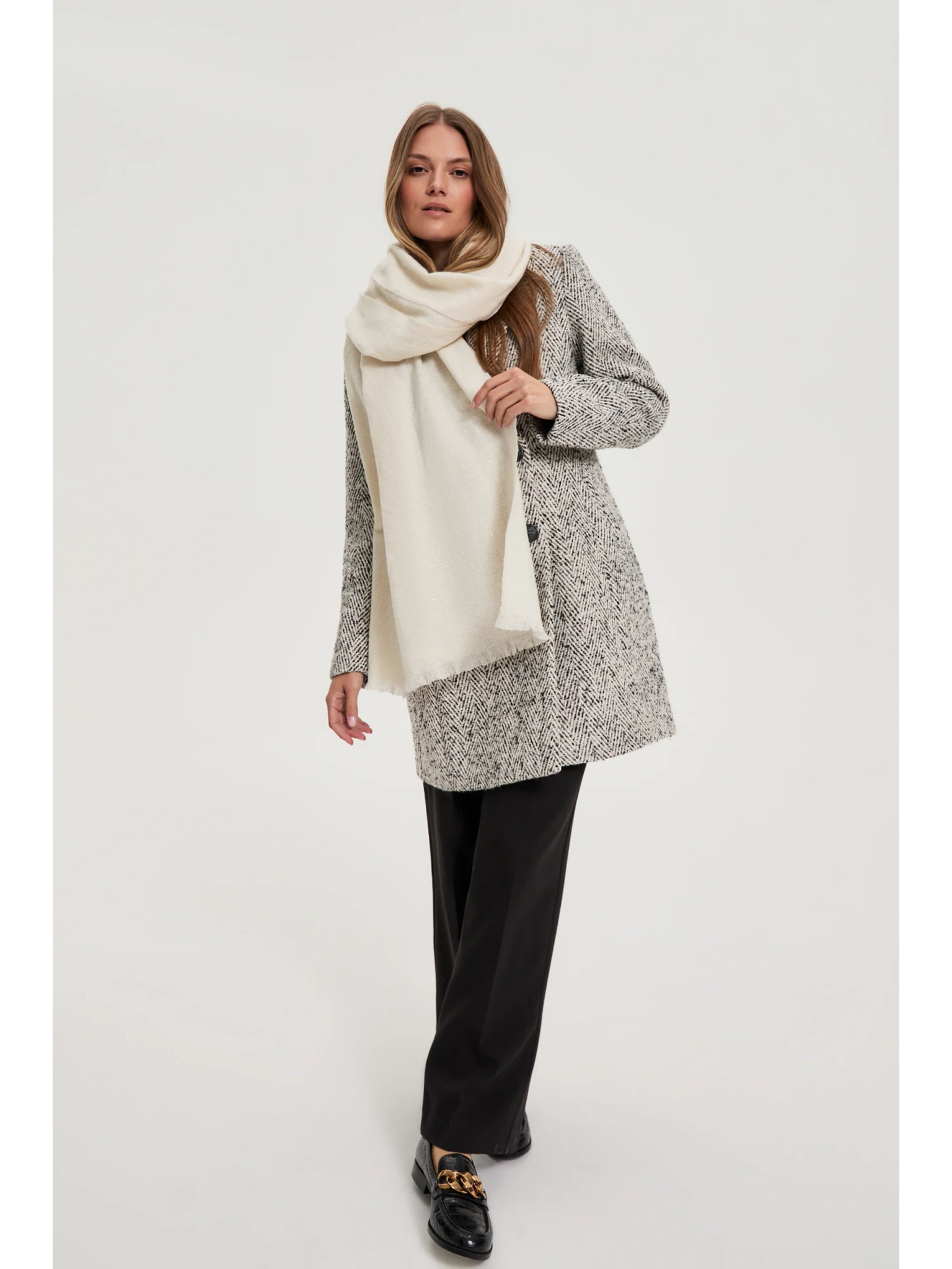 Šal s resicama kremasti Moodo