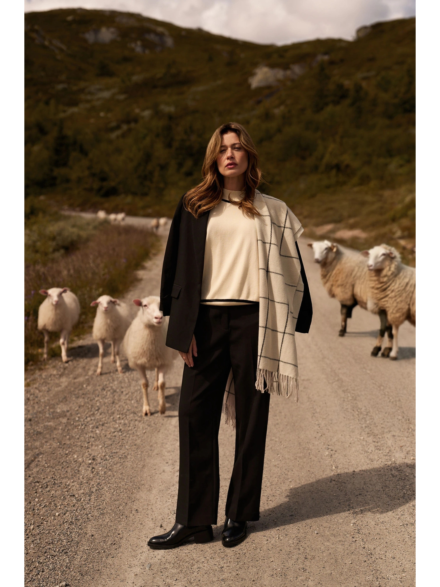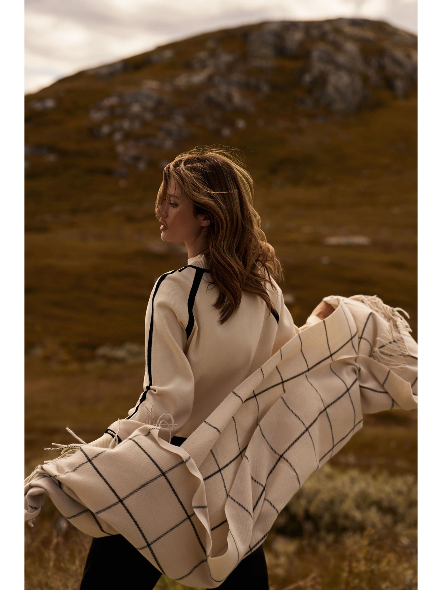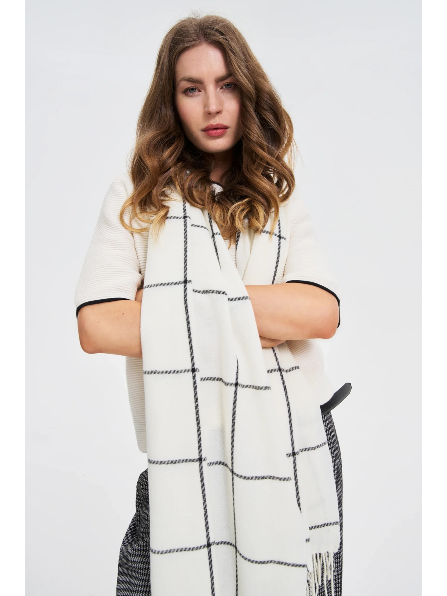 Šal s resicama kremasti Moodo
