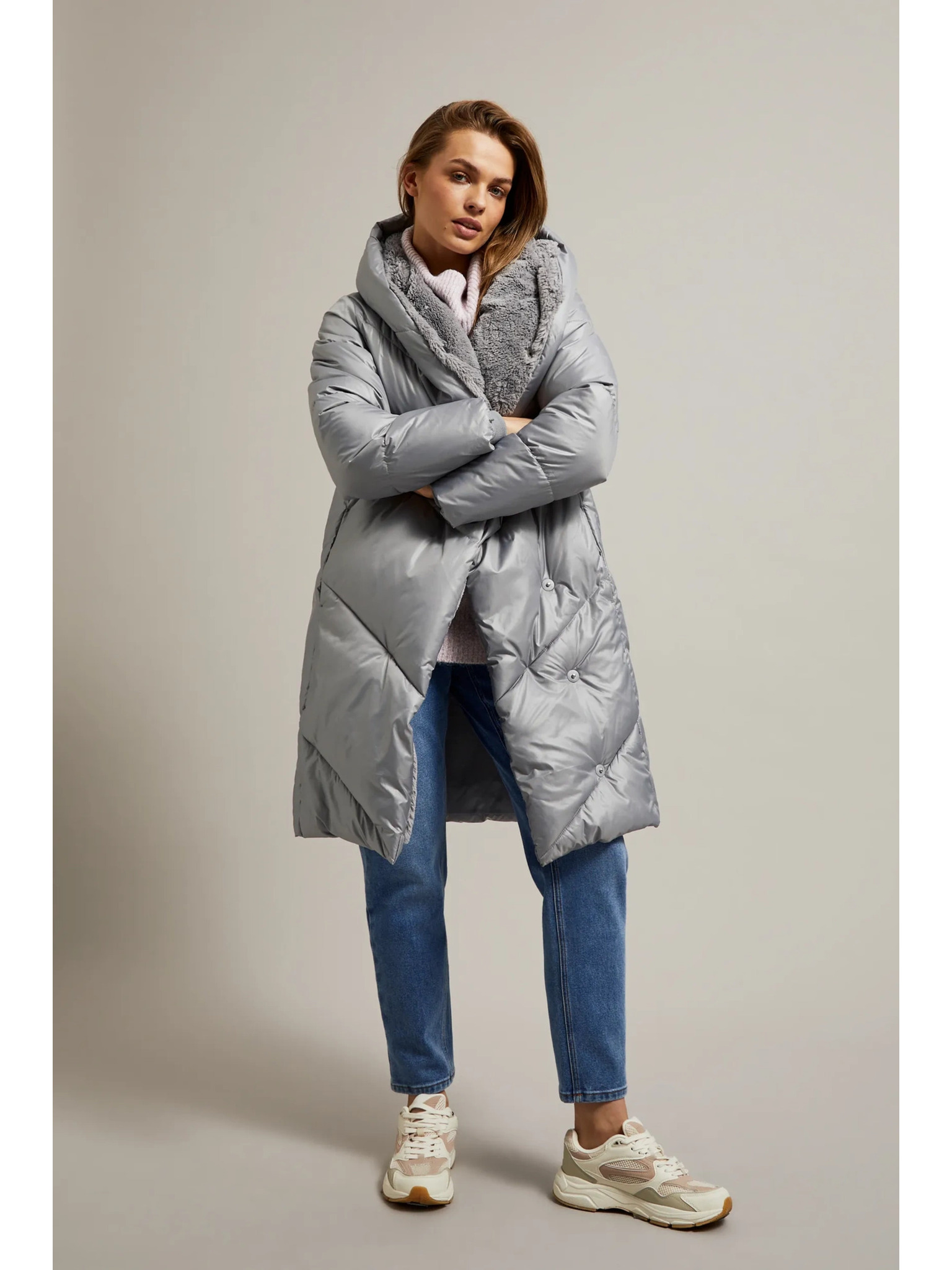 Sivi ženski zimski prošiveni kaput ORSAY