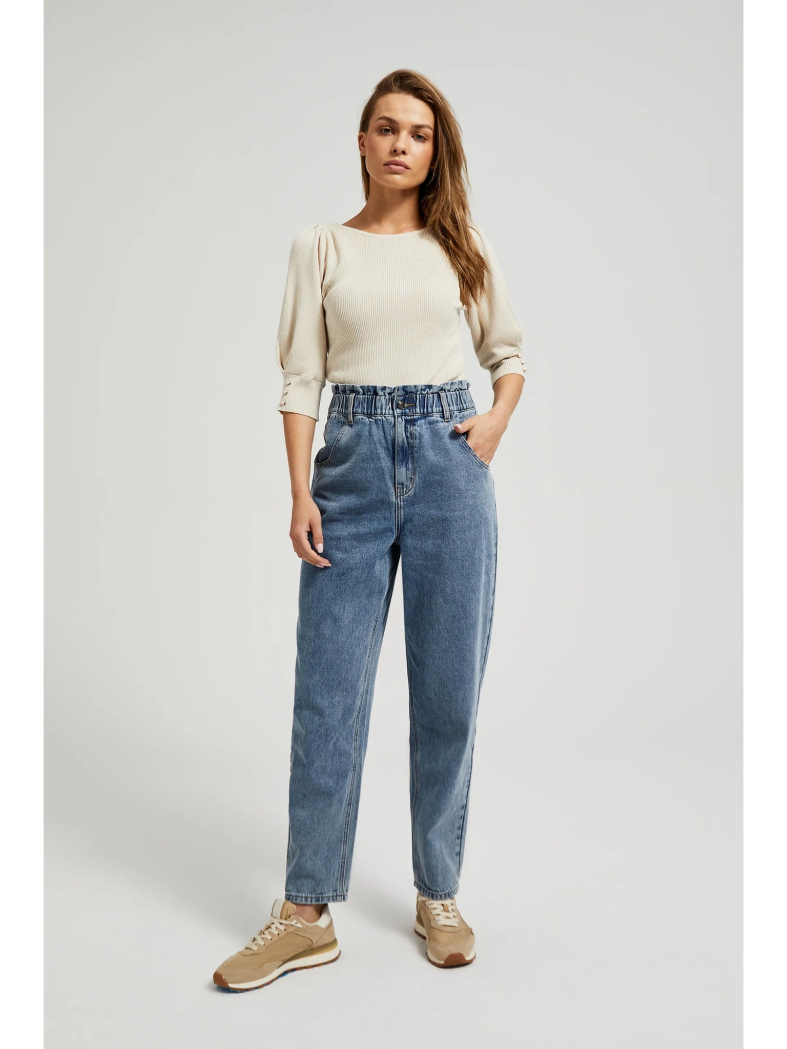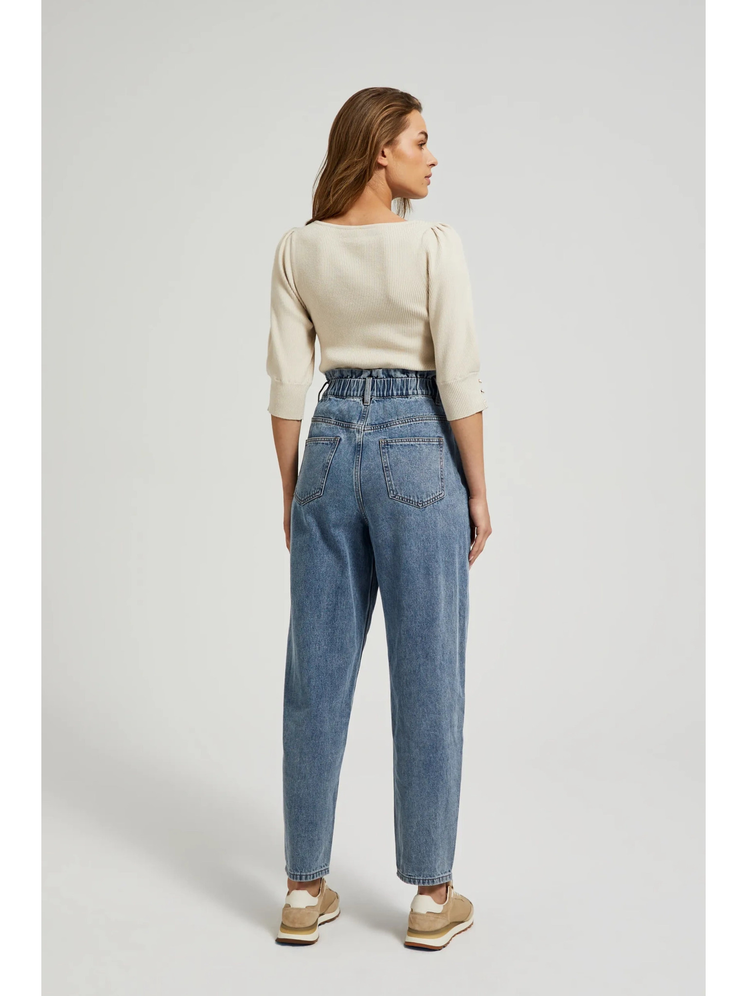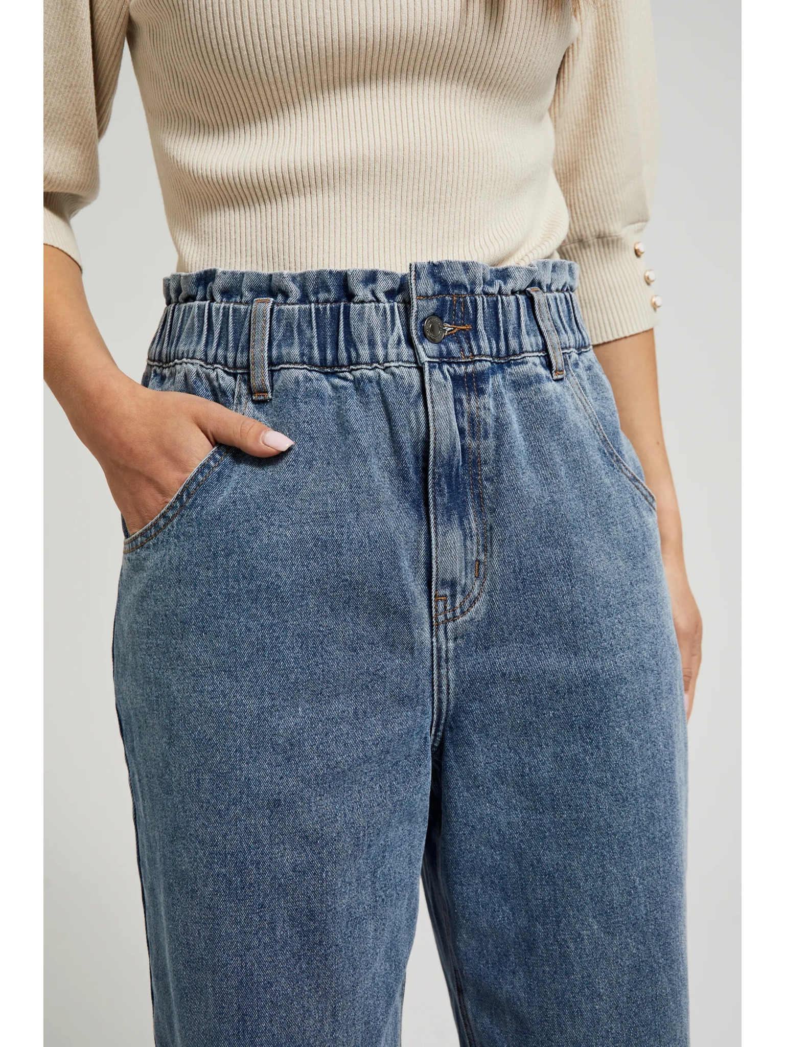 Plave pamučne traperice visokog struka Moodo