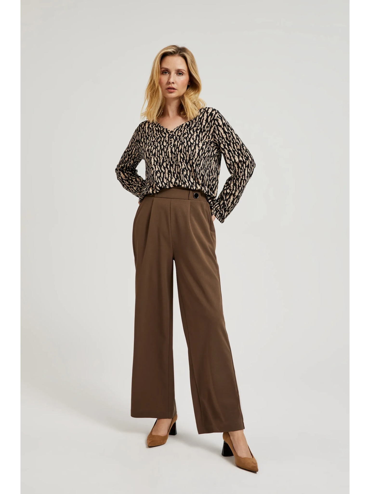 Bež hlače širokih nogavica s gumbima Moodo