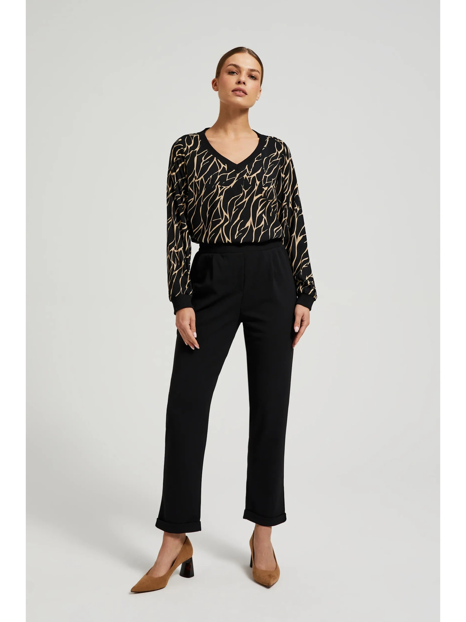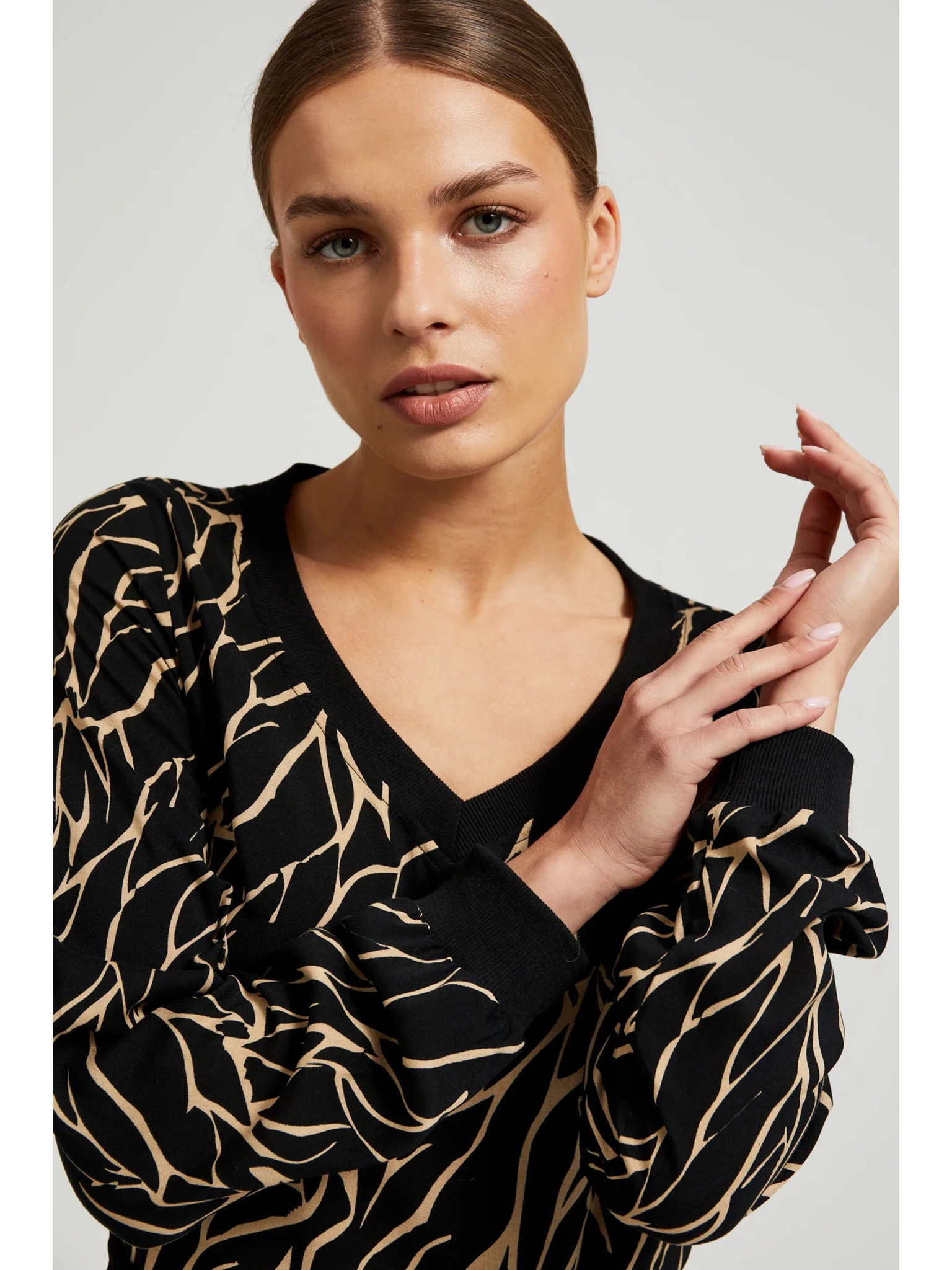 Viskozna crna košulja s V-izrezom Moodo