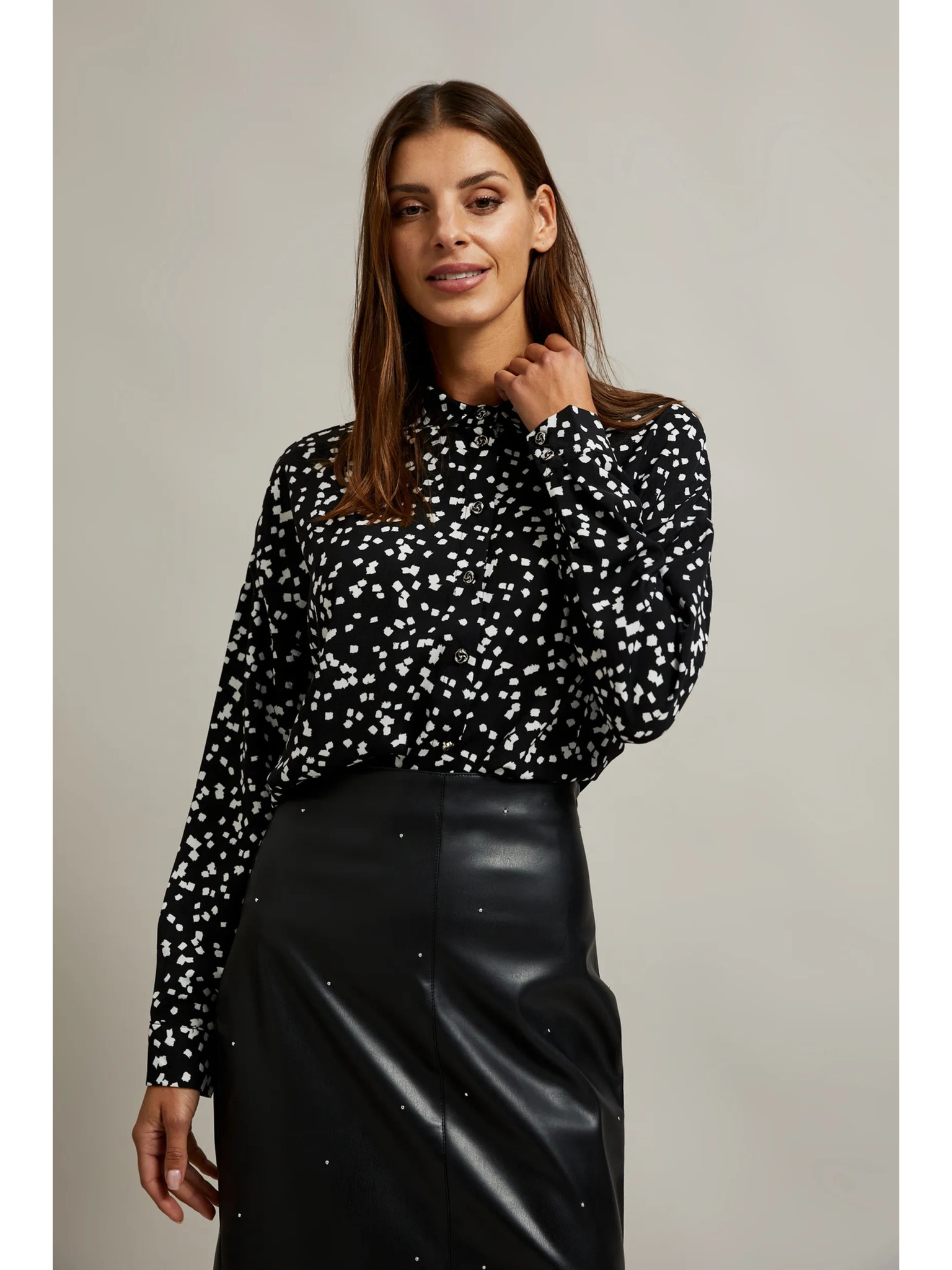 Crna košulja s uzorkom i ovratnikom Moodo