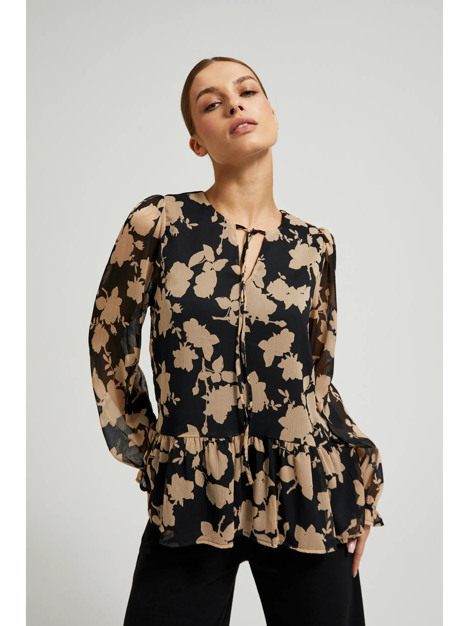 Crna ženska bluza sa cvjetnim uzorkom ORSAY