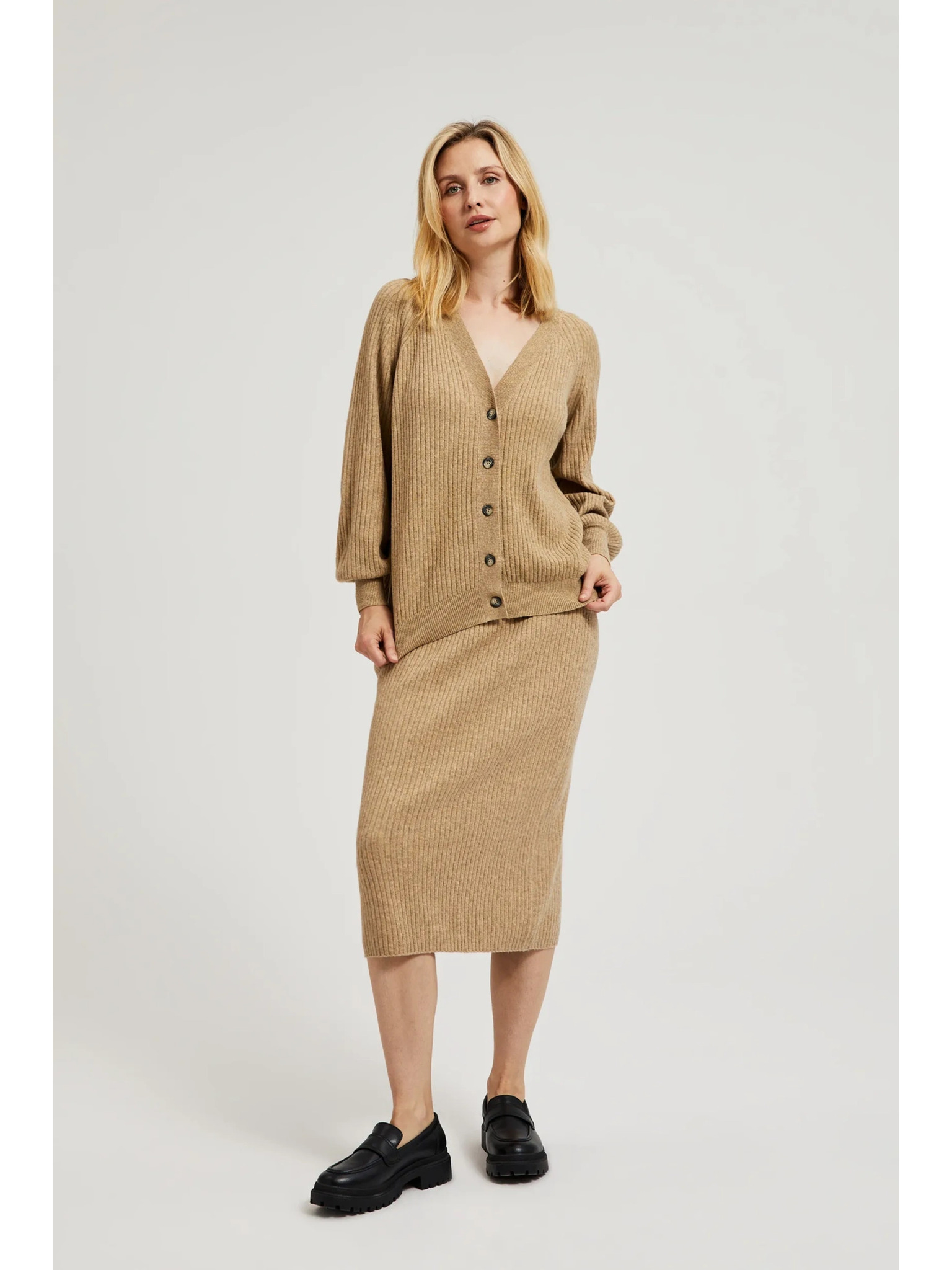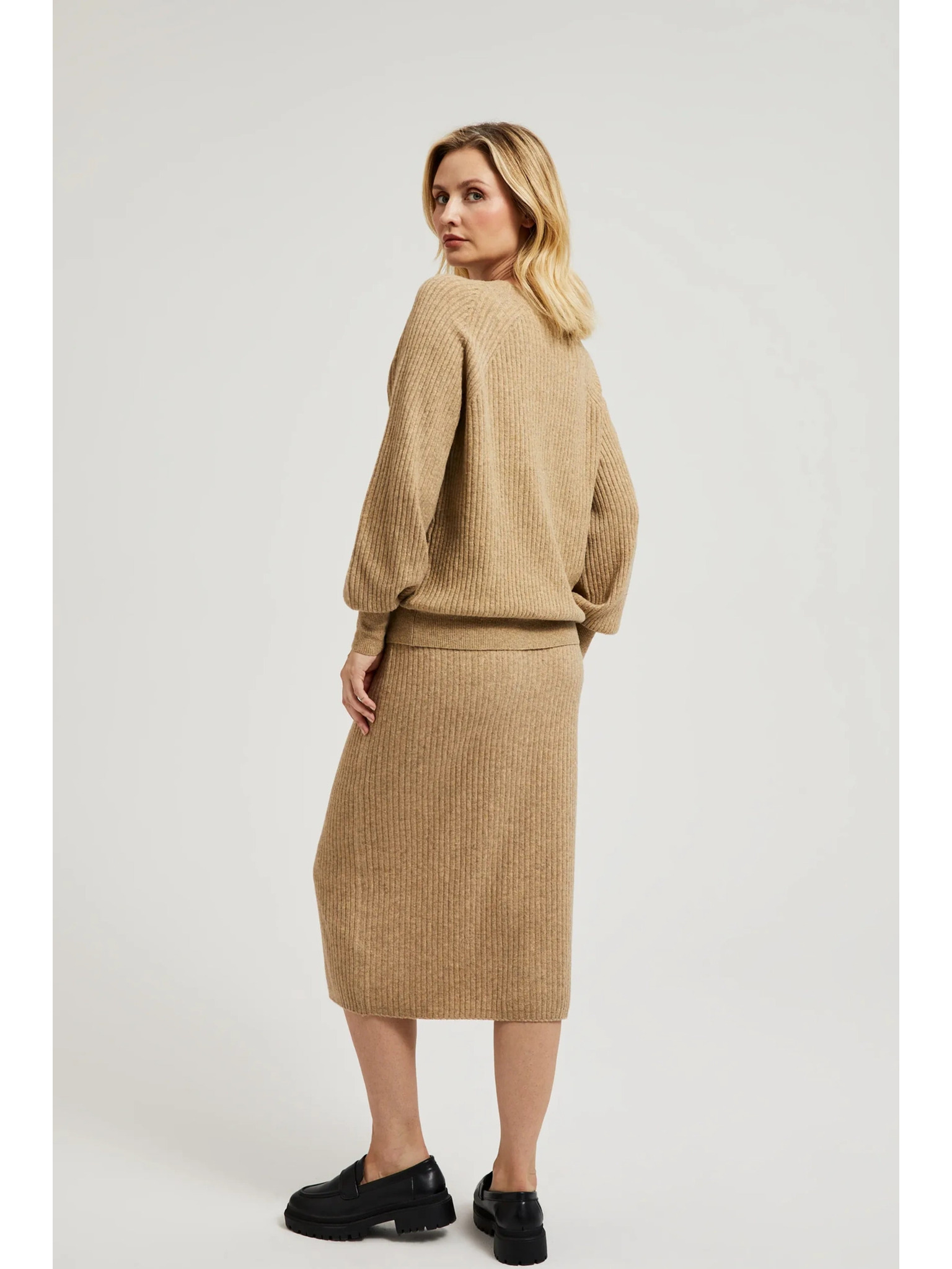 Pletena midi suknja bež Moodo