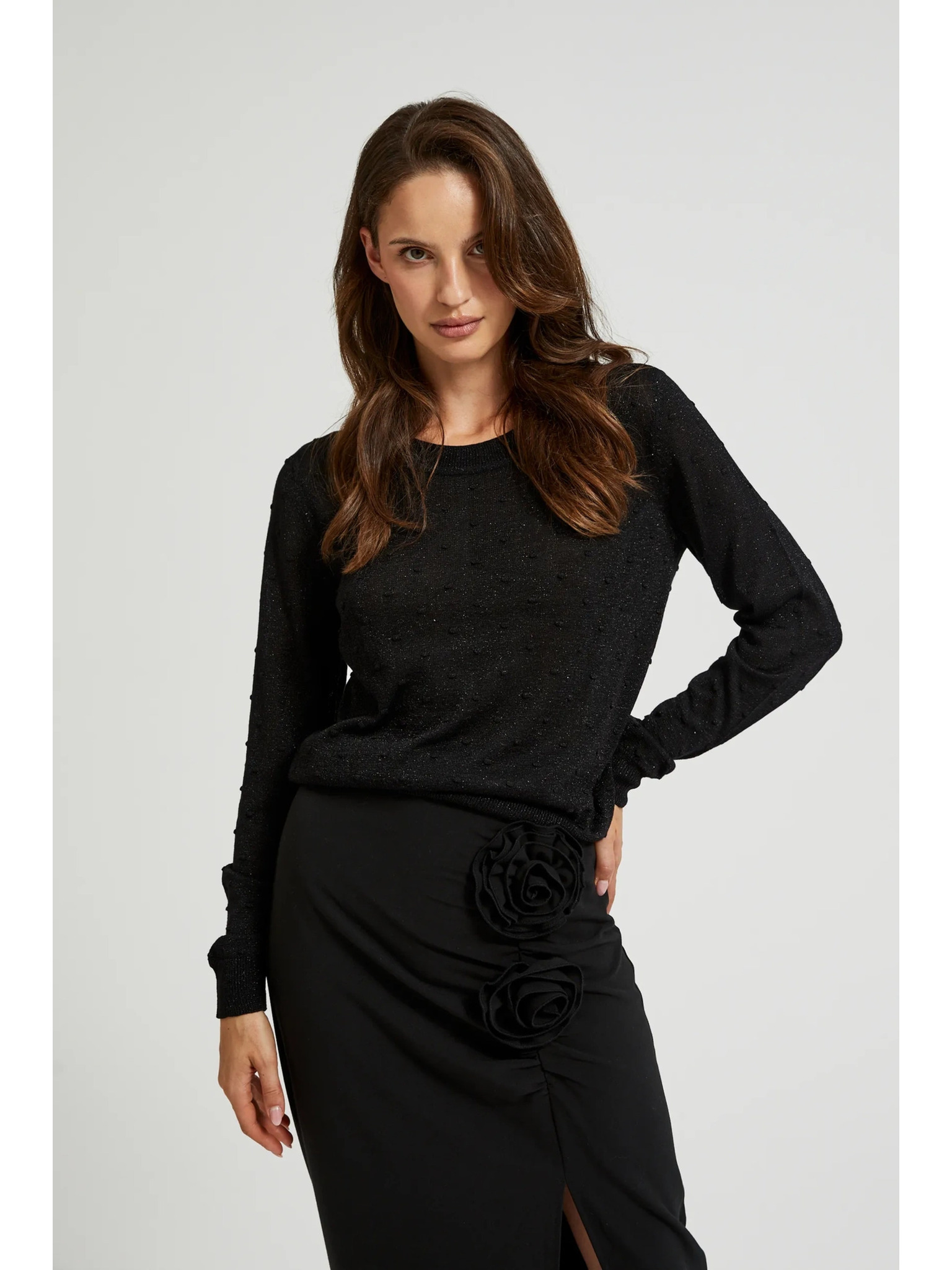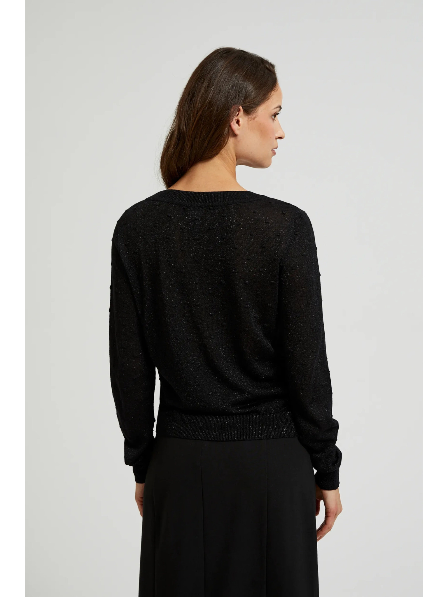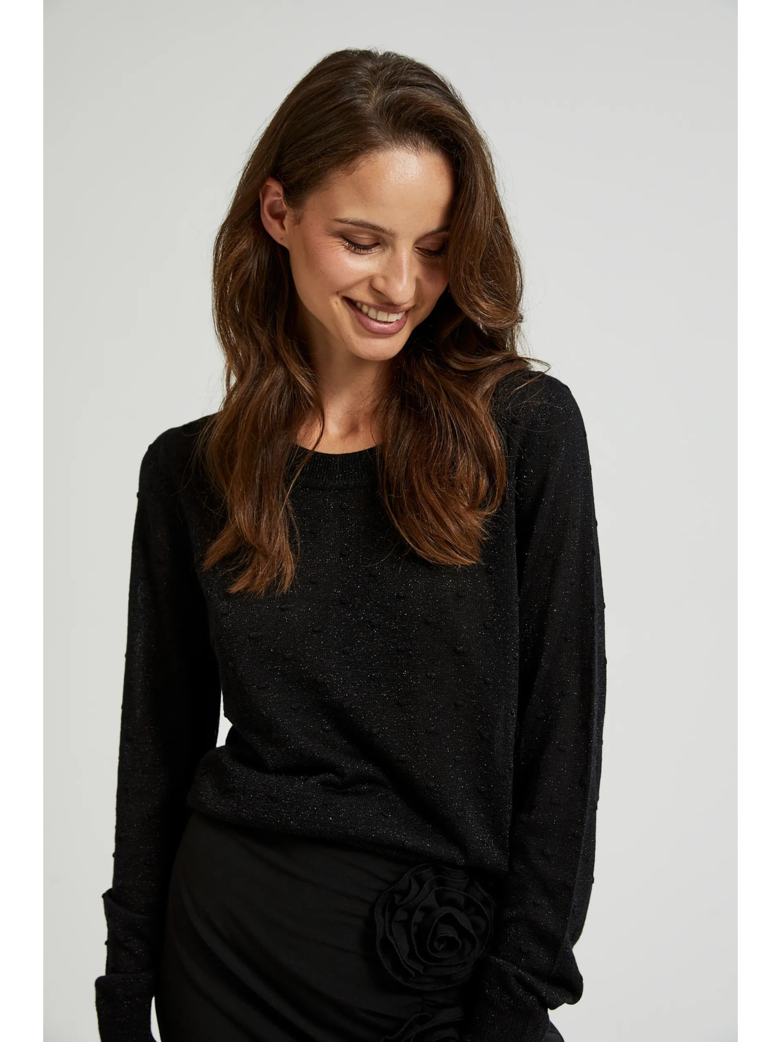 Džemper dugih rukava ukrašen metalnom niti crne boje Moodo