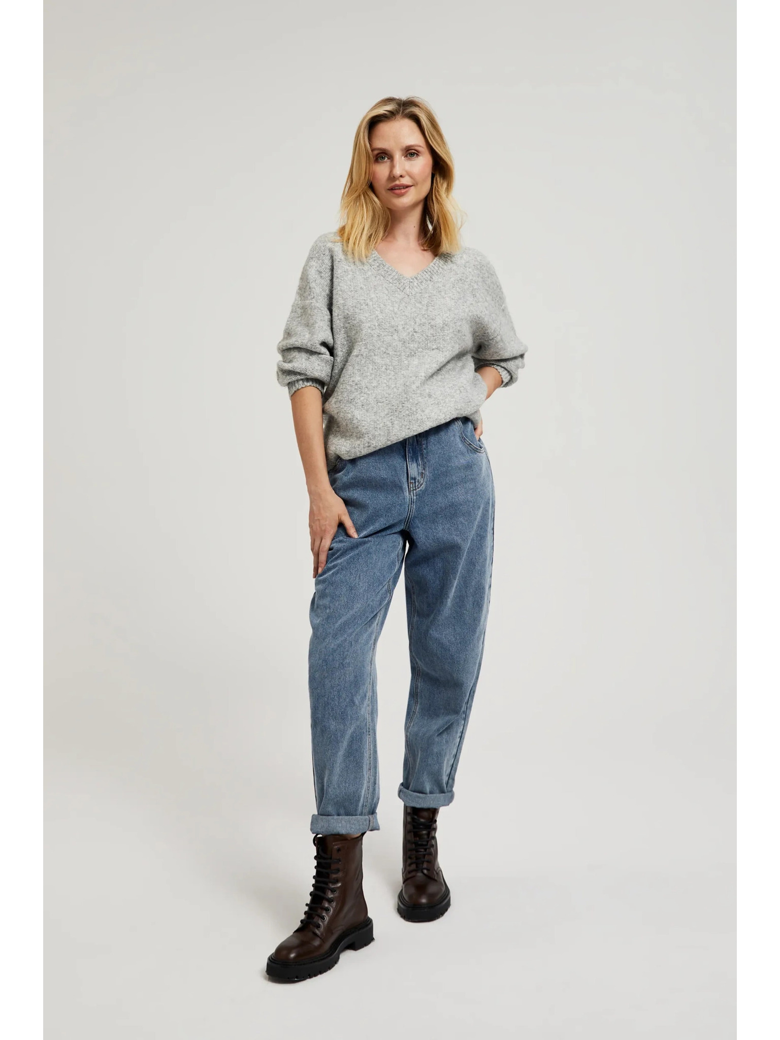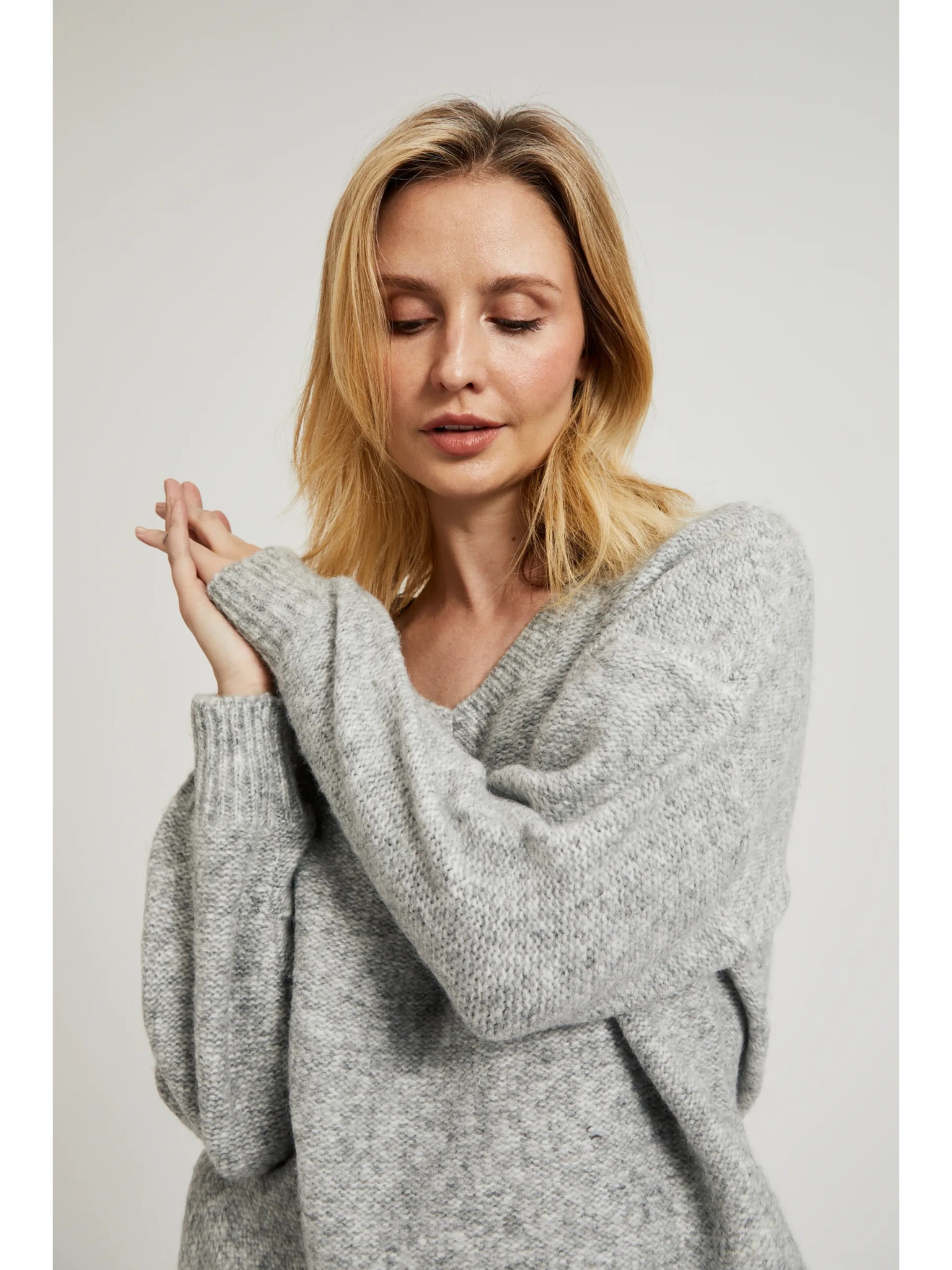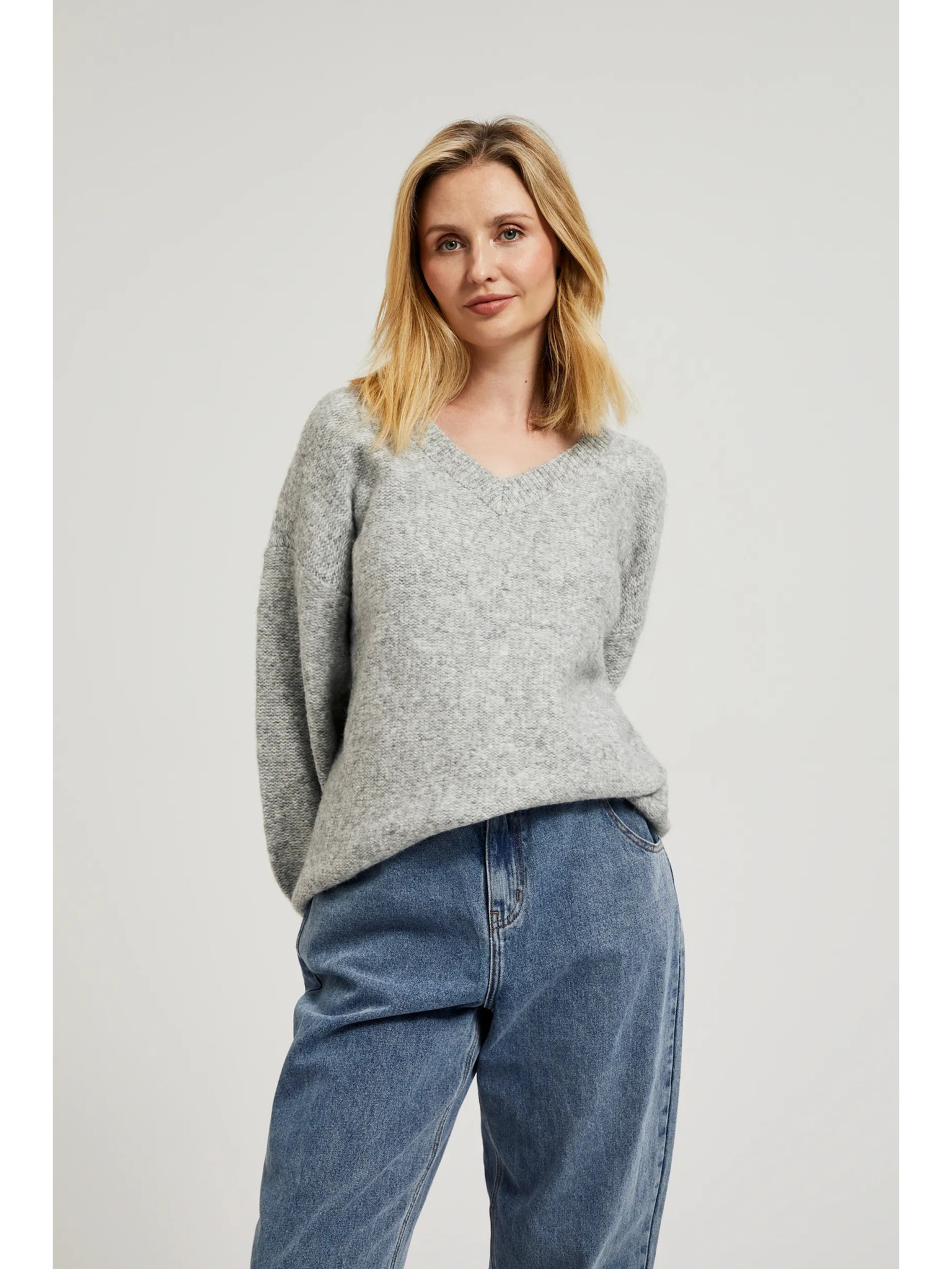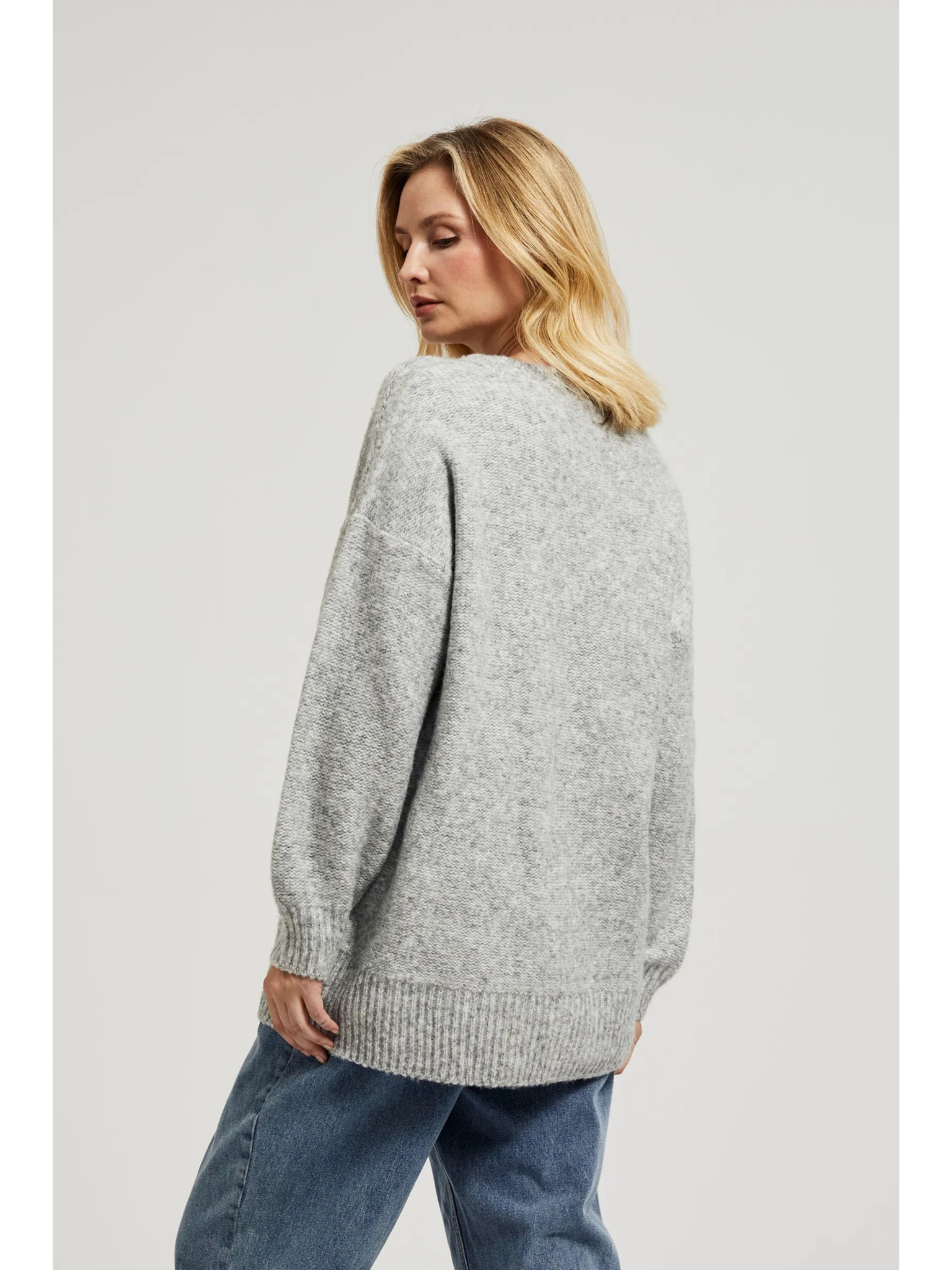 Glatki džemper dugih rukava sive boje Moodo