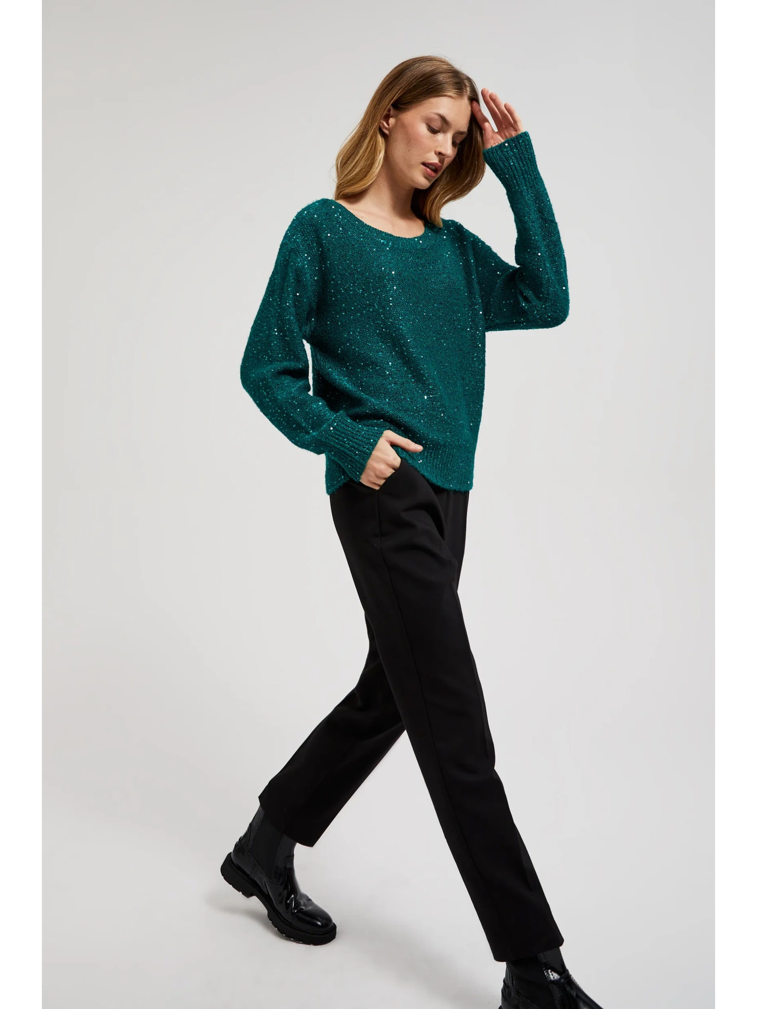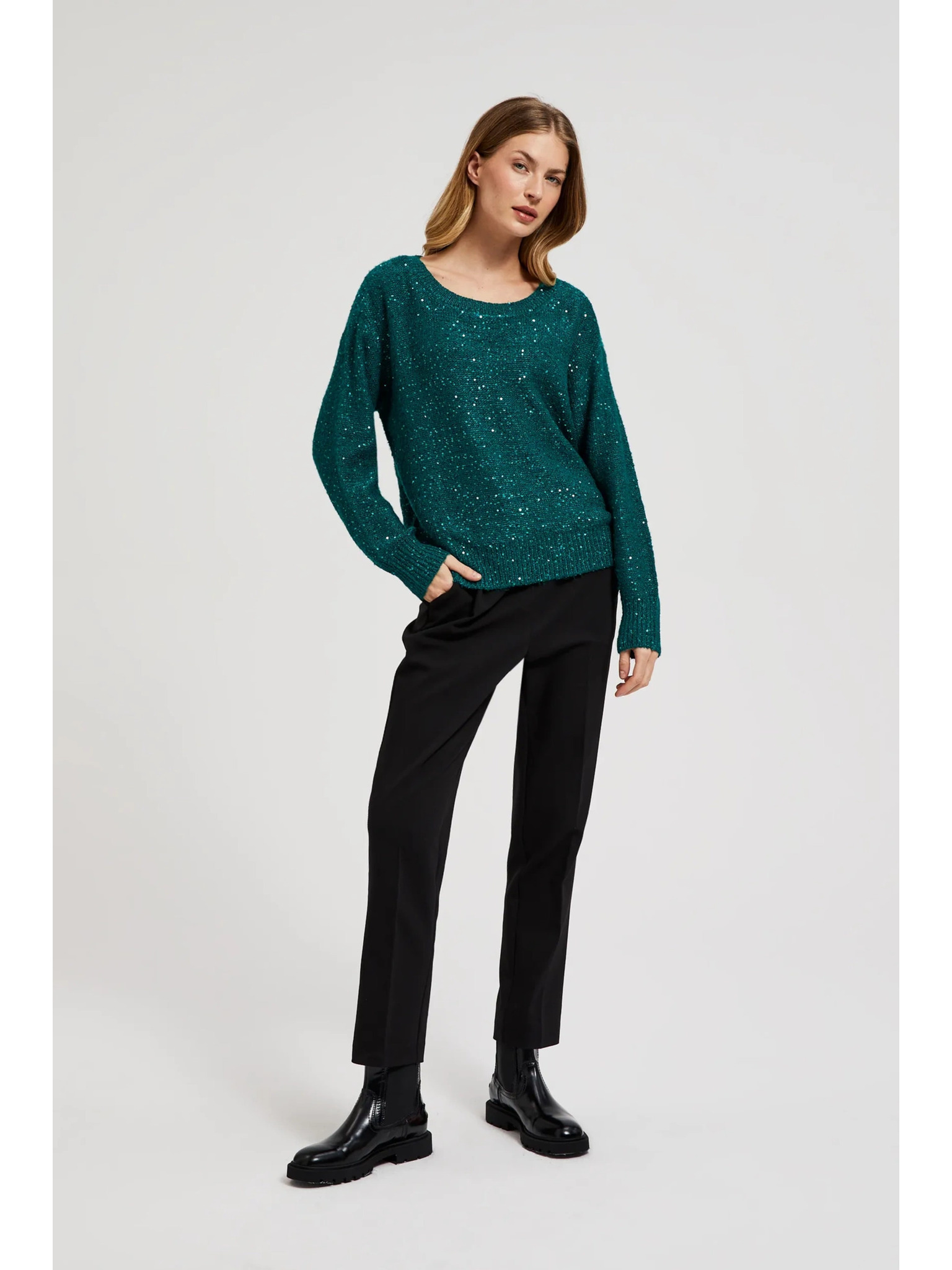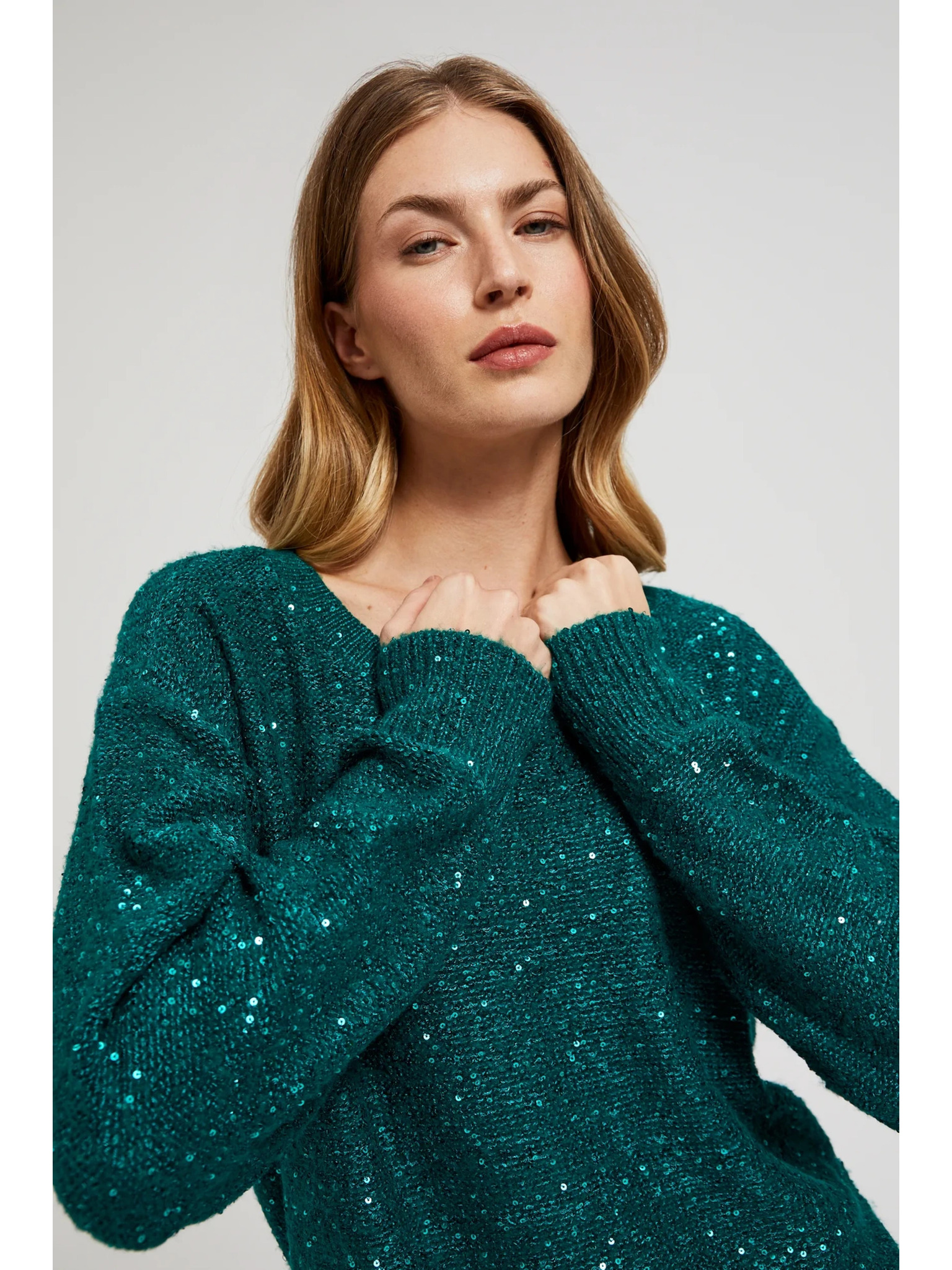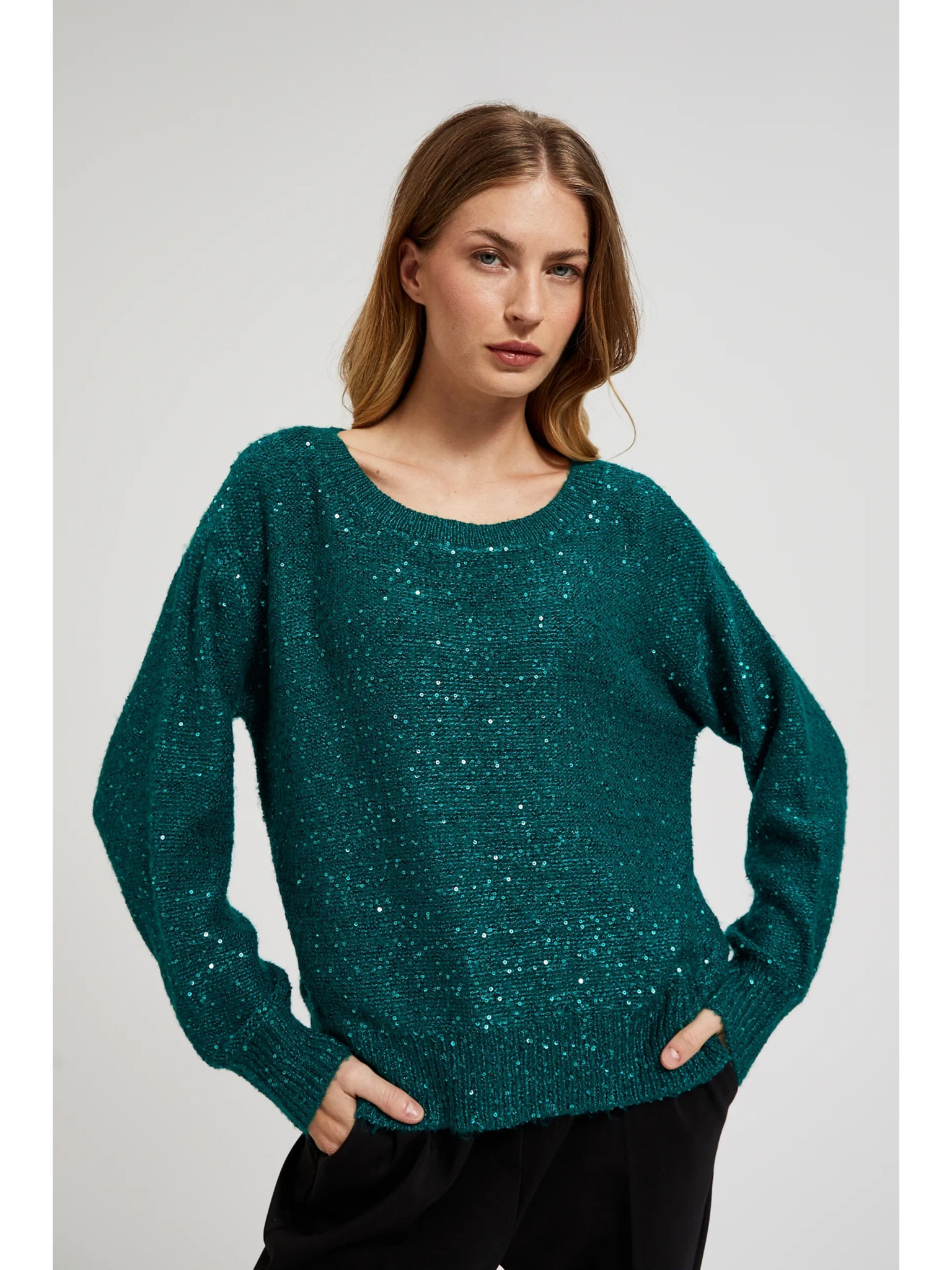 Zeleni džemper s metalnim vlaknom Moodo