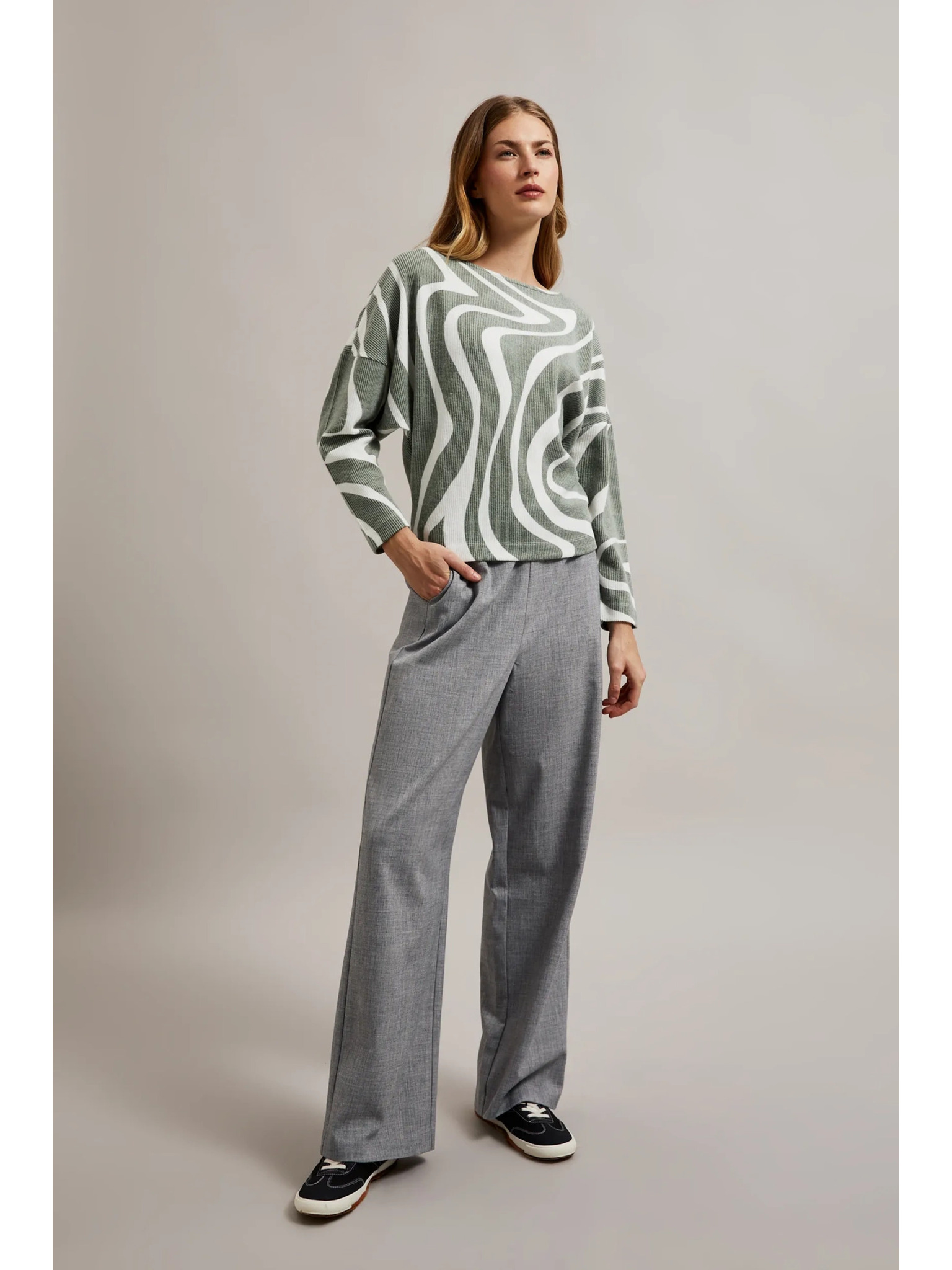 Bluza s geometrijskim uzorkom i dugim rukavima maslinasta Moodo