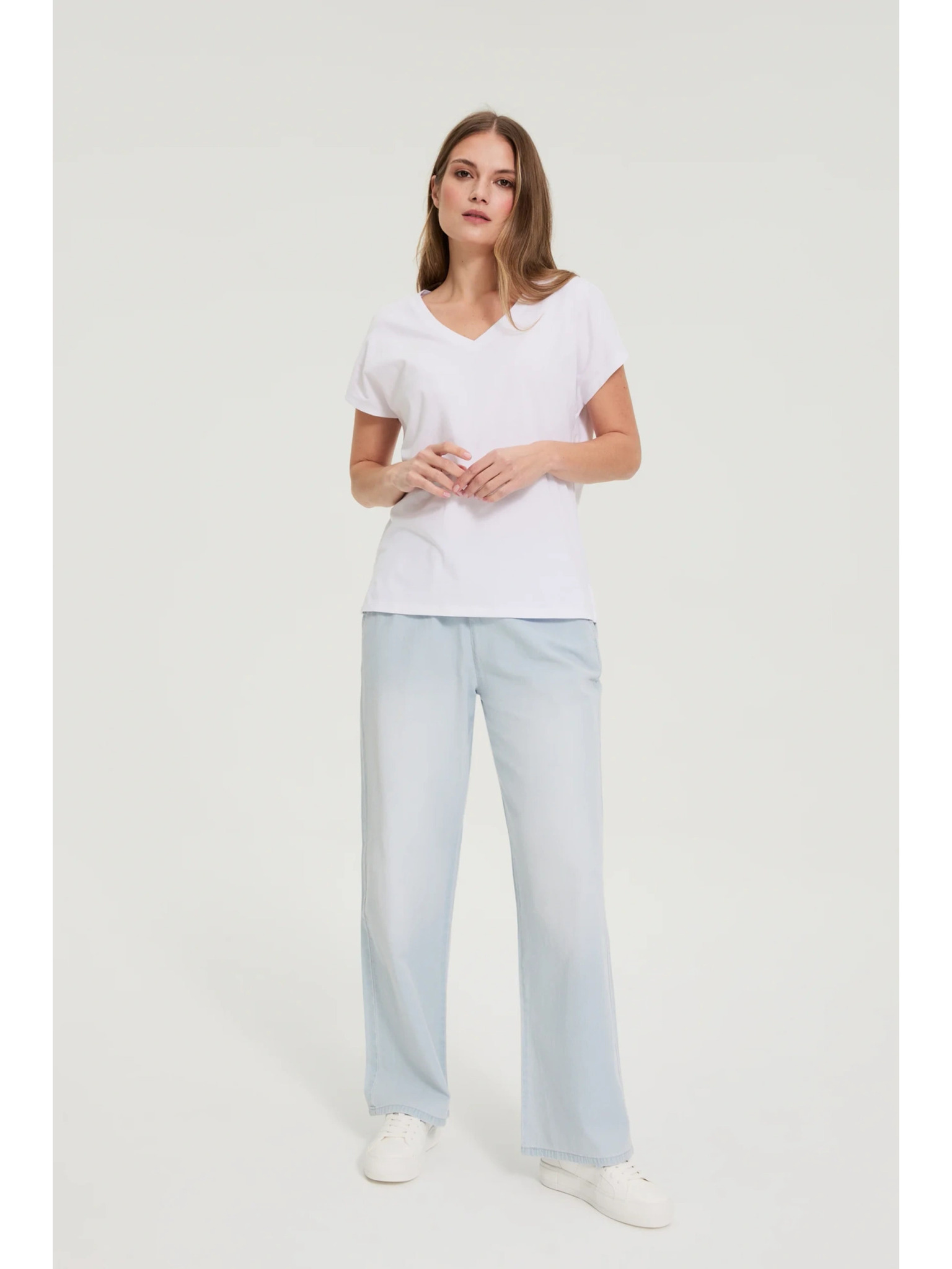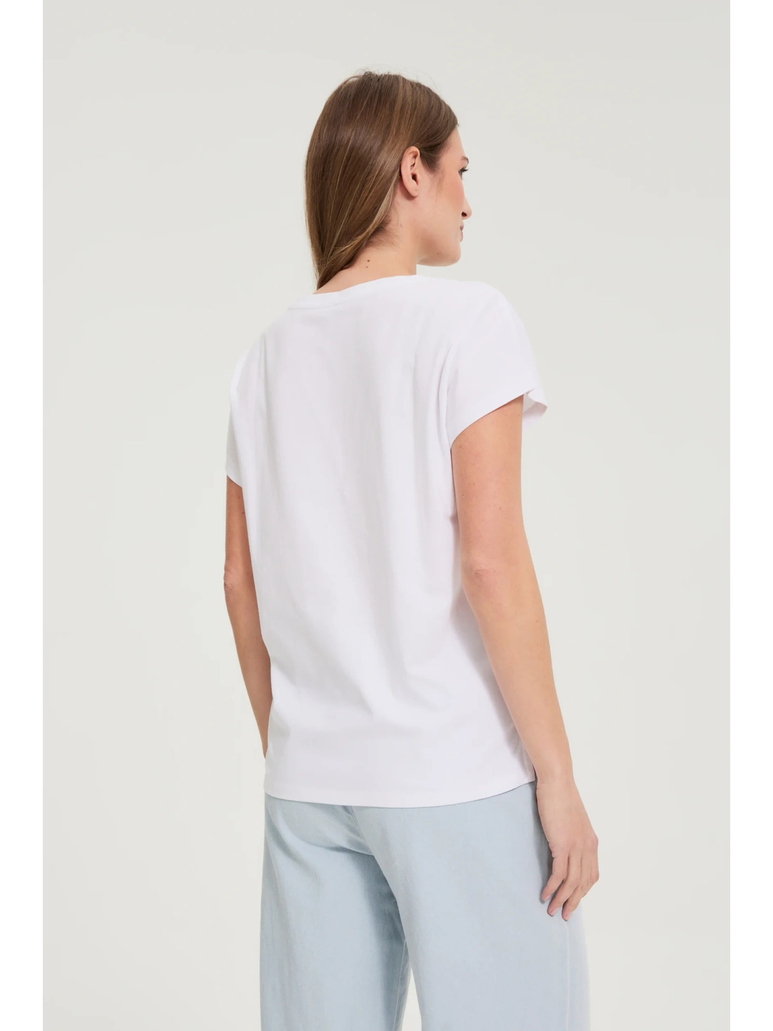 Pamučna majica s V izrezom bijela Moodo