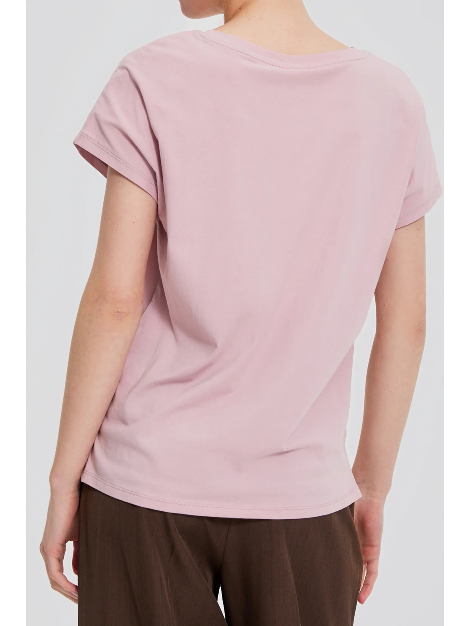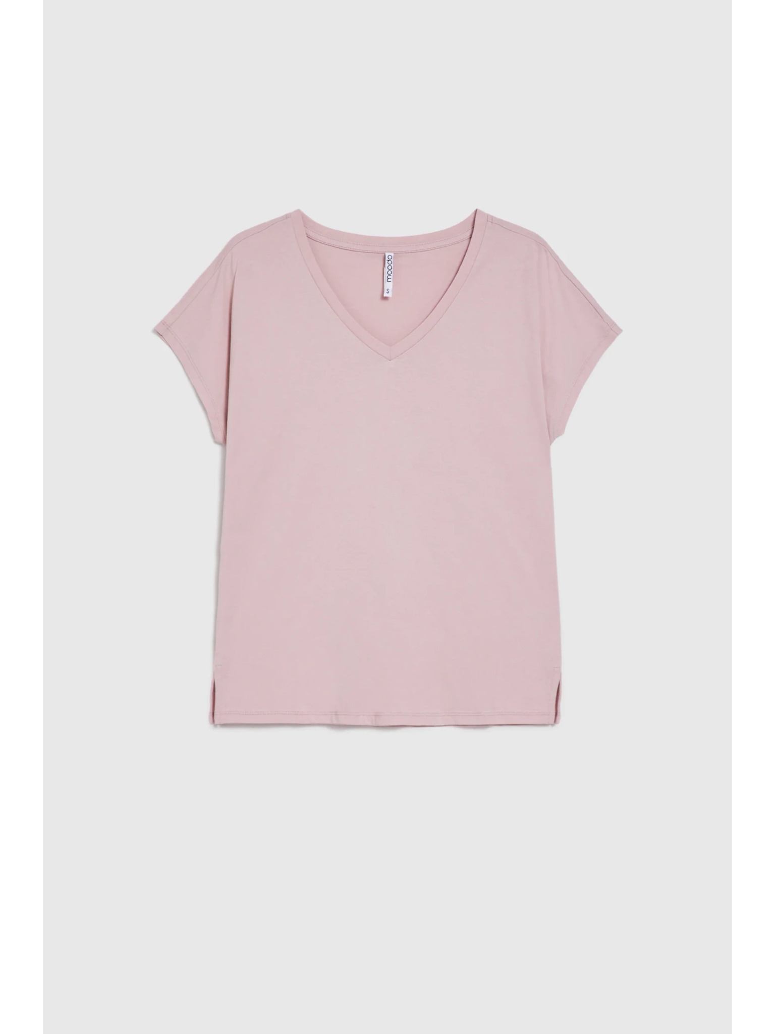 Pamučna majica s V izrezom svjetlo ružičaste Moodo