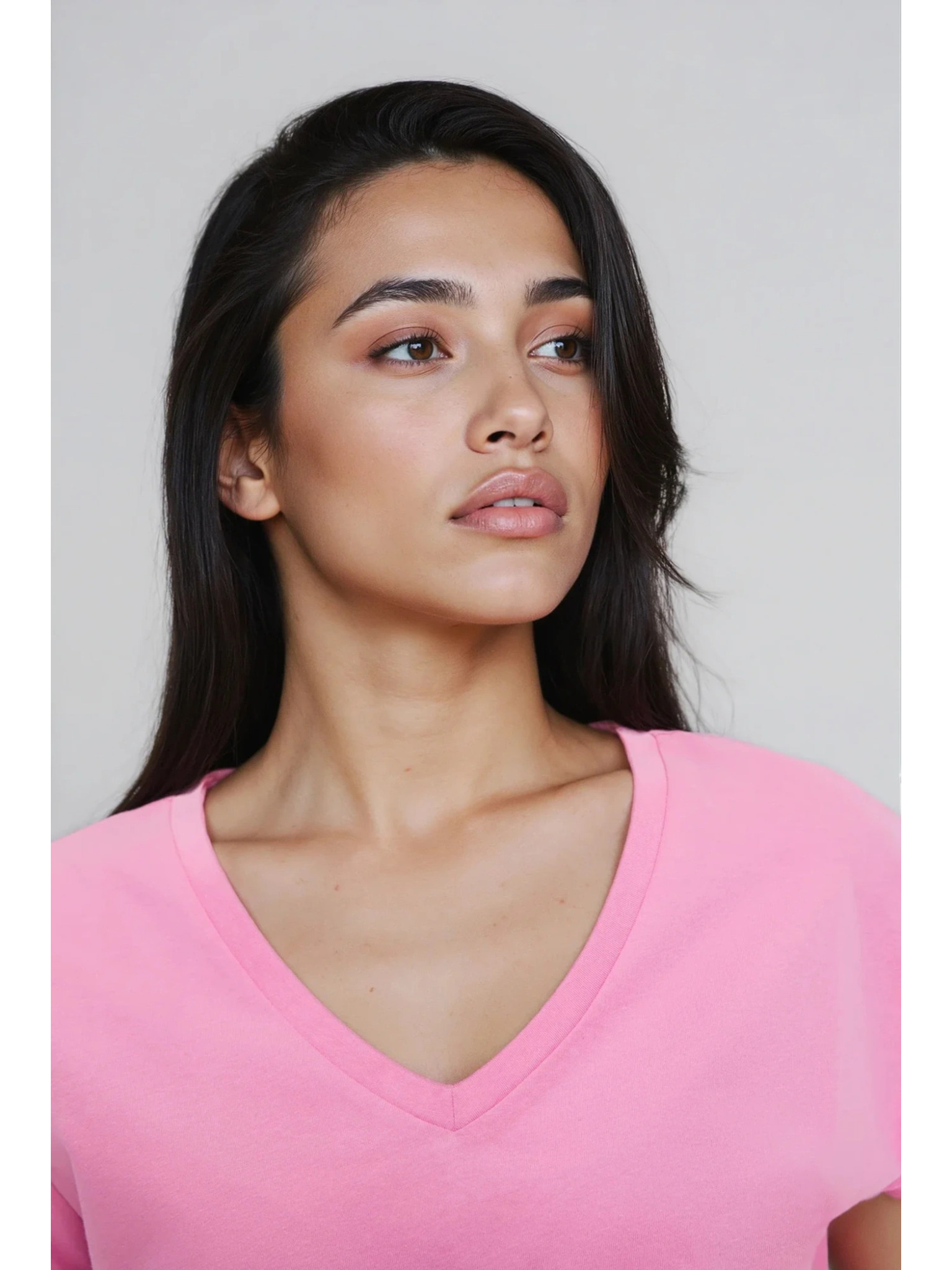 Pamučna majica s V izrezom ružičaste Moodo