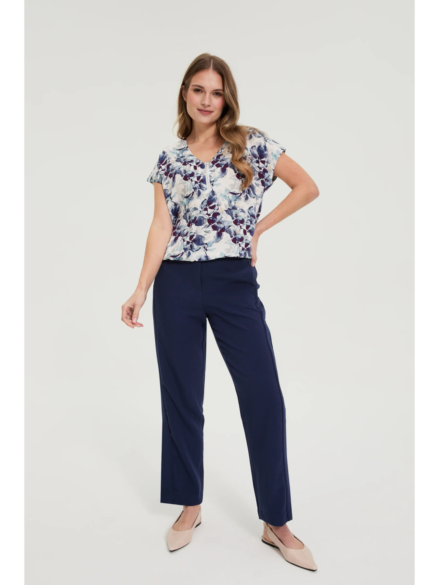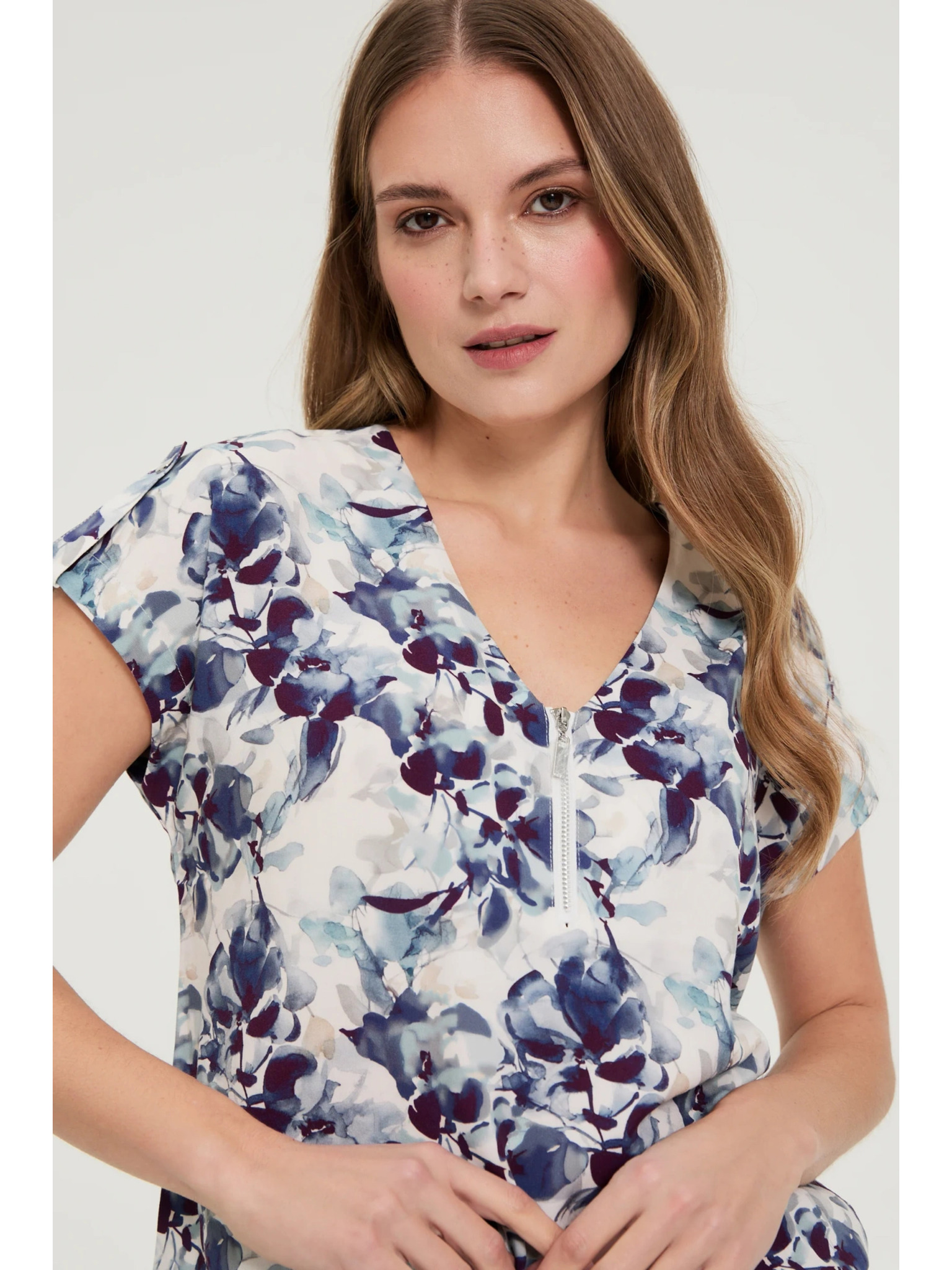 Tamno plava viskozna košulja Moodo s cvjetnim uzorkom