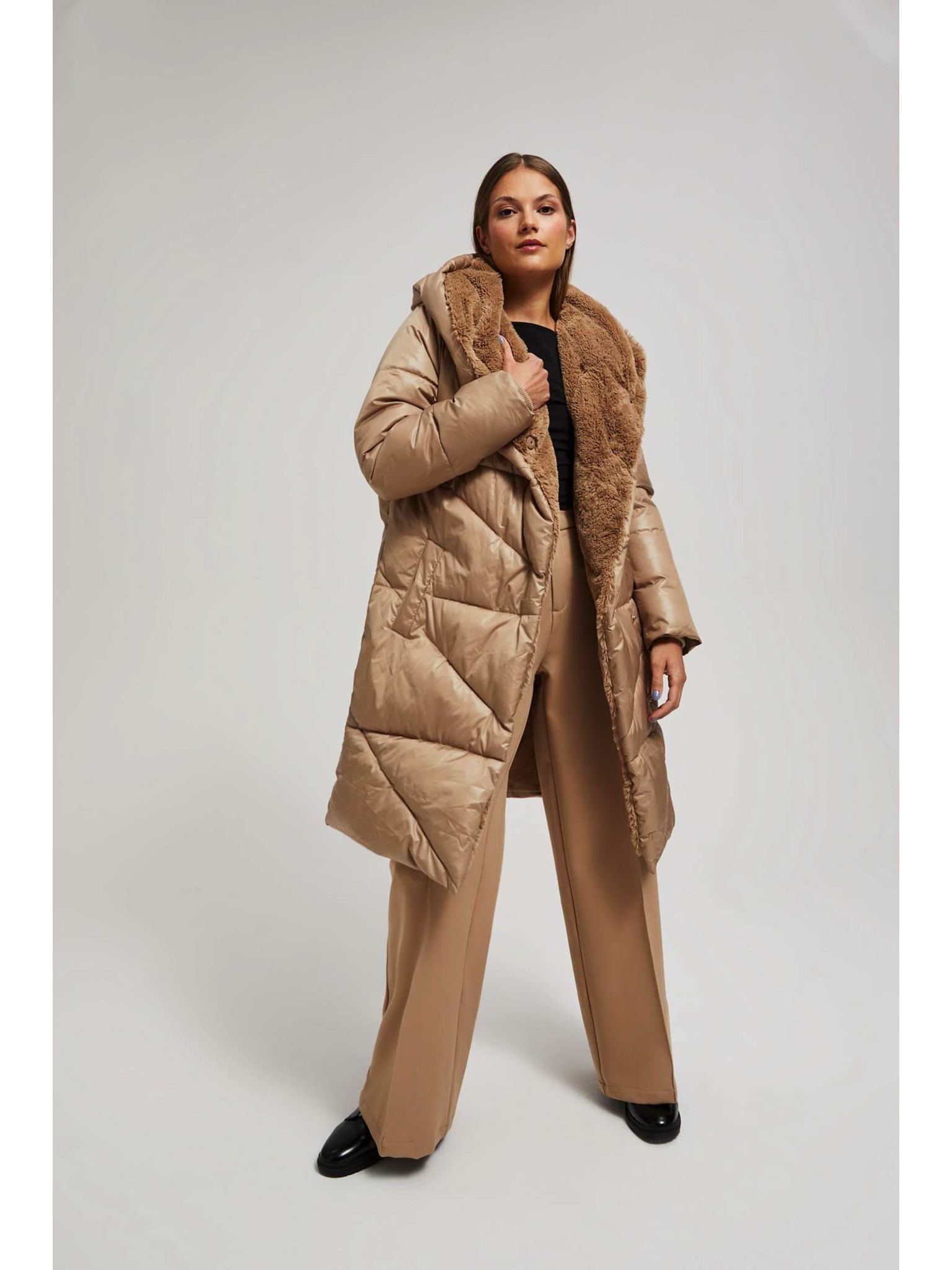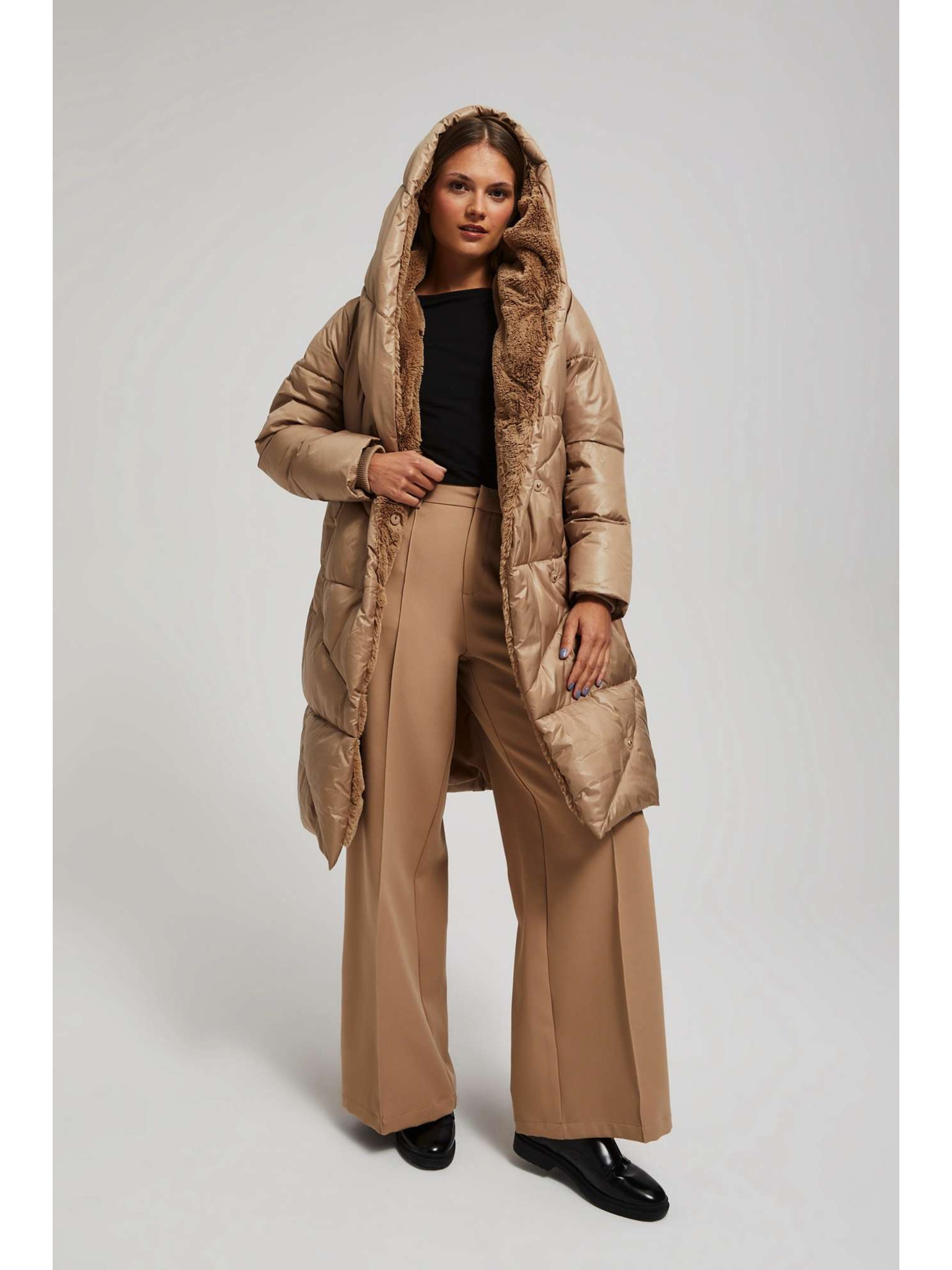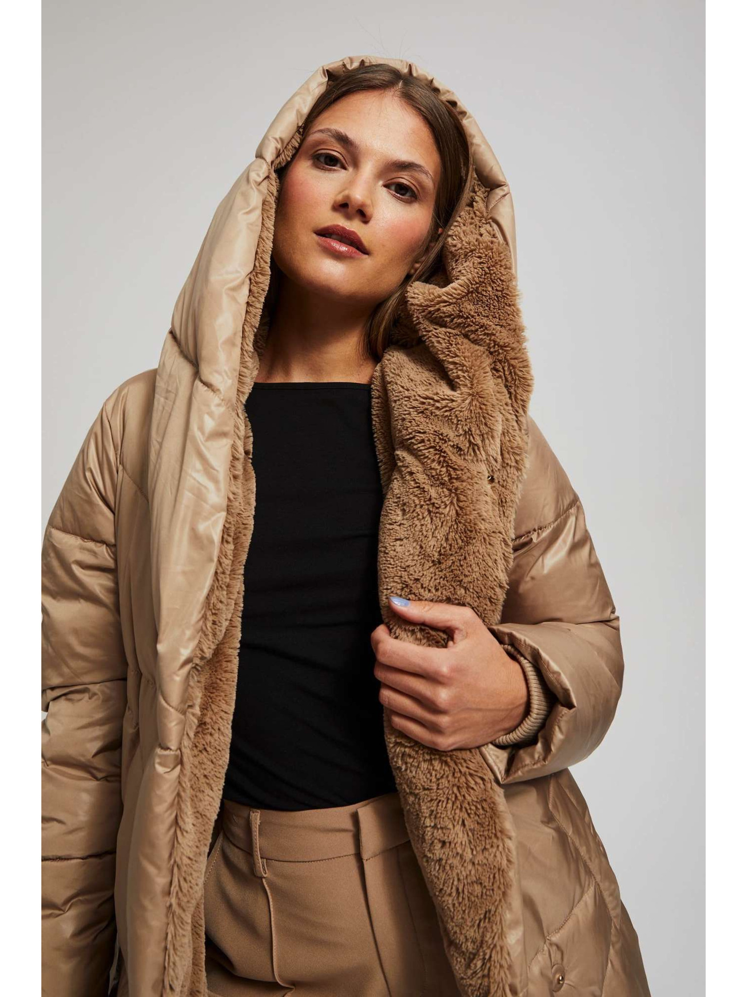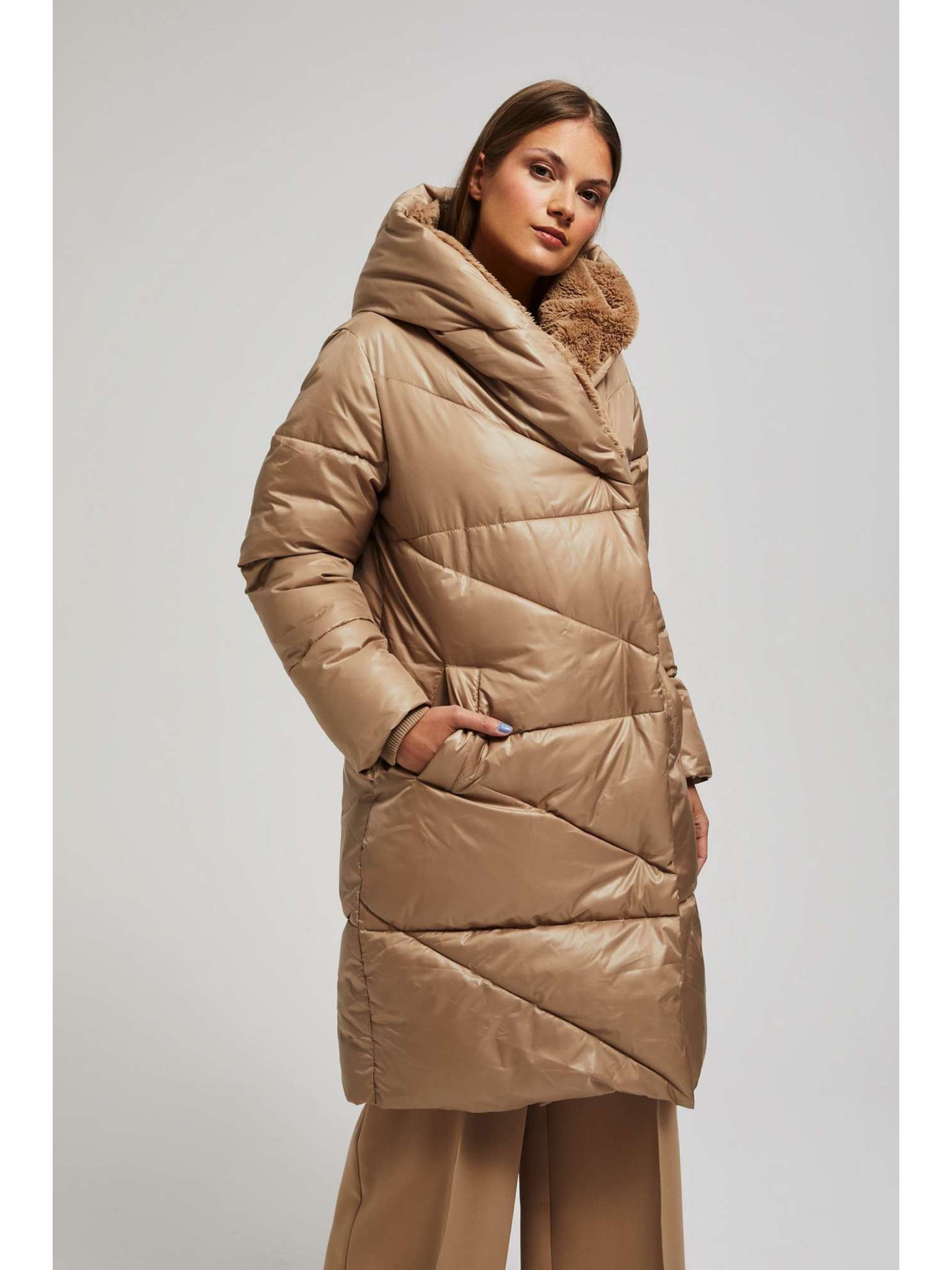 Prošivena jakna s kapuljačom bež Moodo