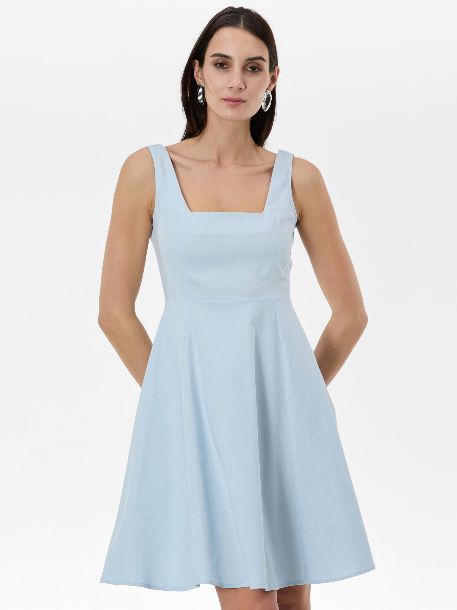Svjetloplava haljina s pojasom
