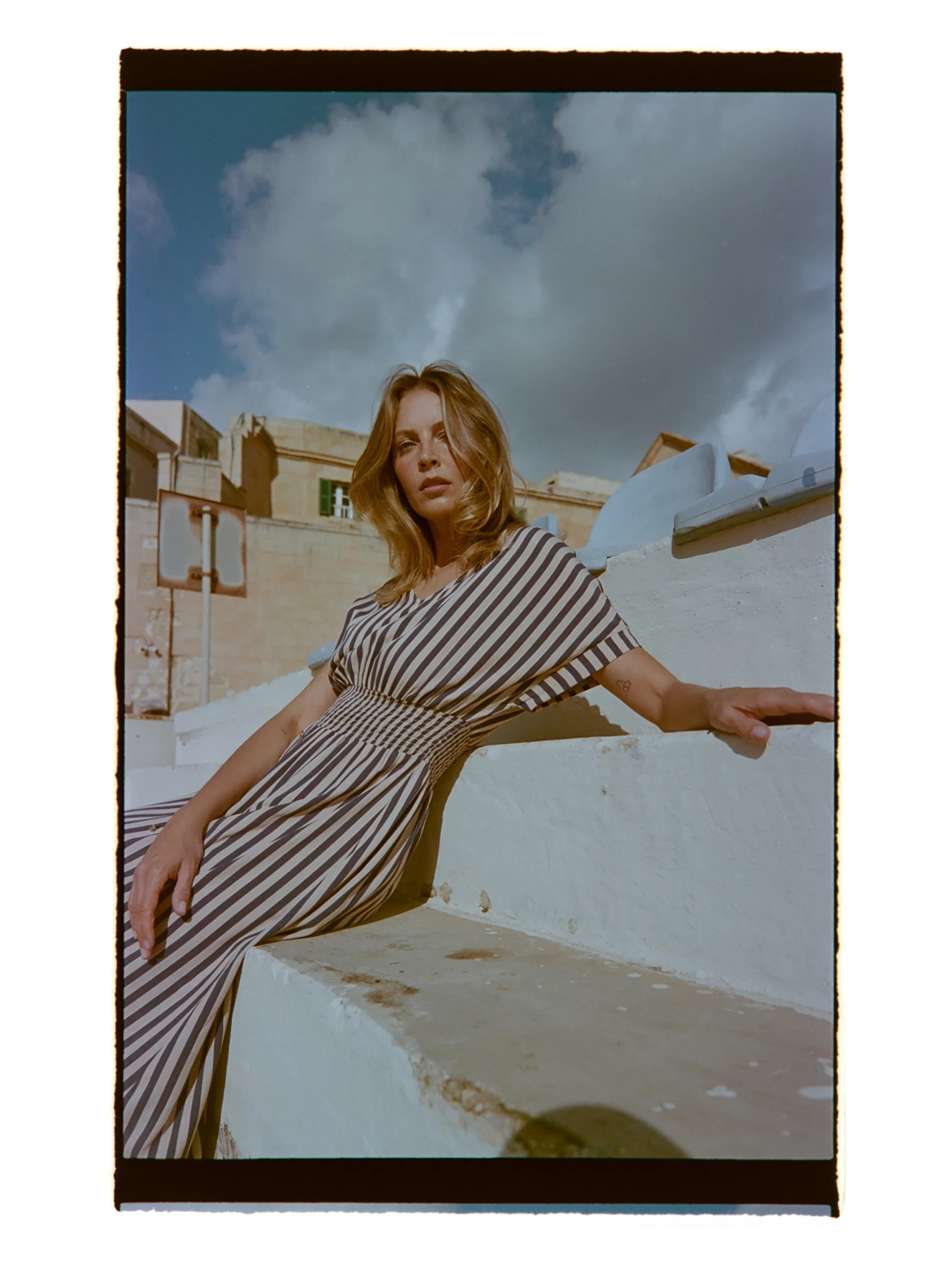 296-13 VICTORIA Boho haljina s trapezastim uzorkom i mediteranskim printom