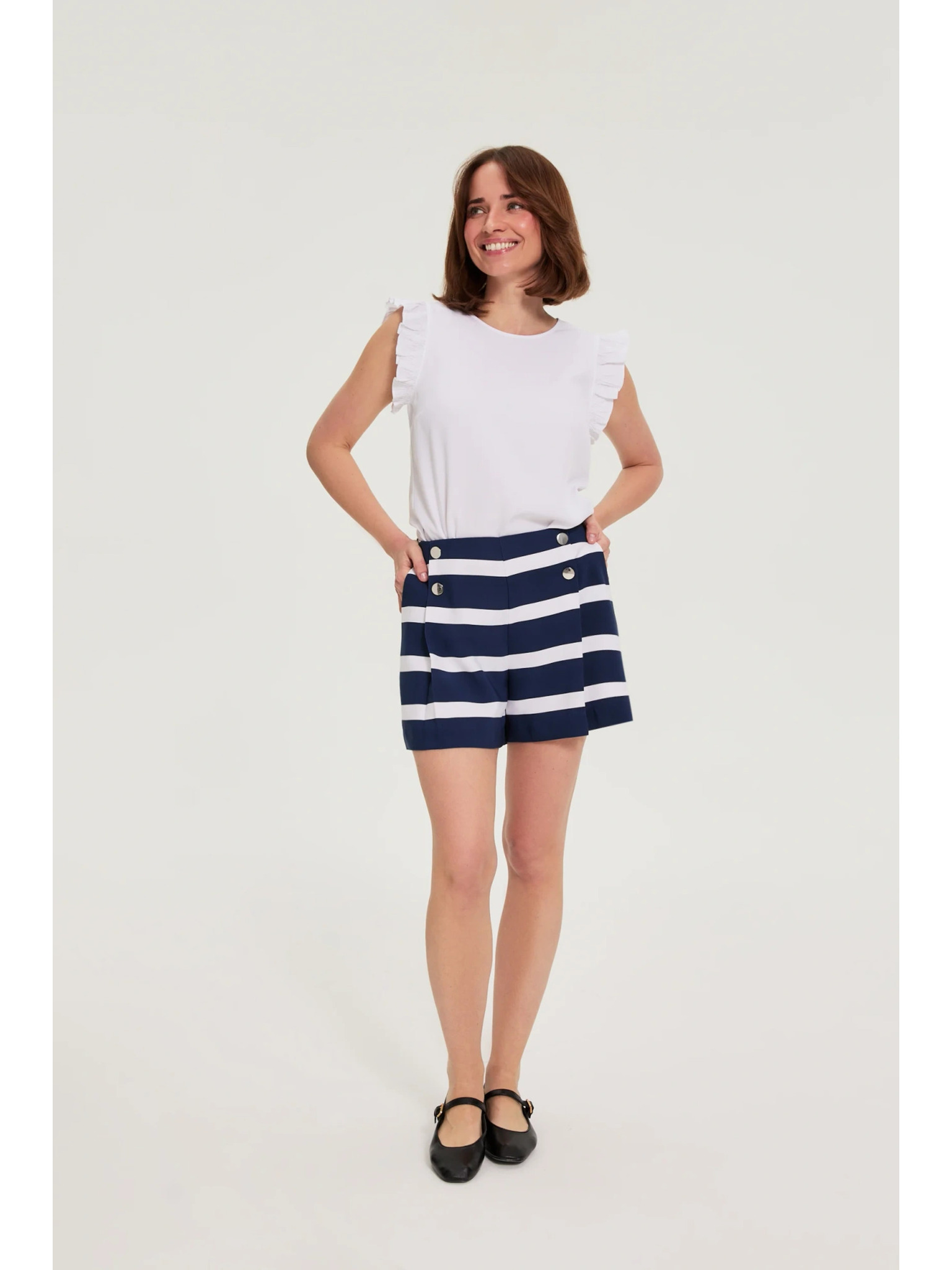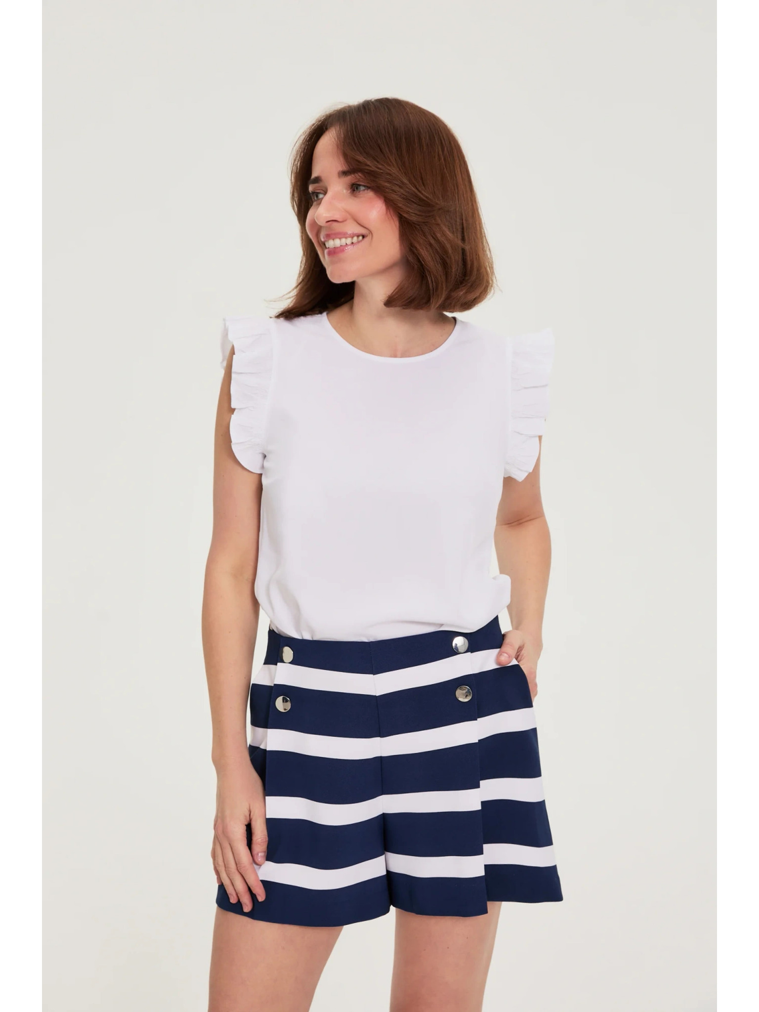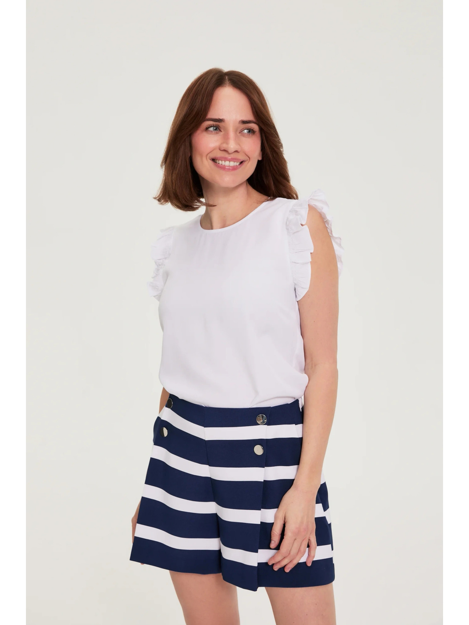 Prugasta košulja s bufirastim rukavima svjetlucavo plava Moodo