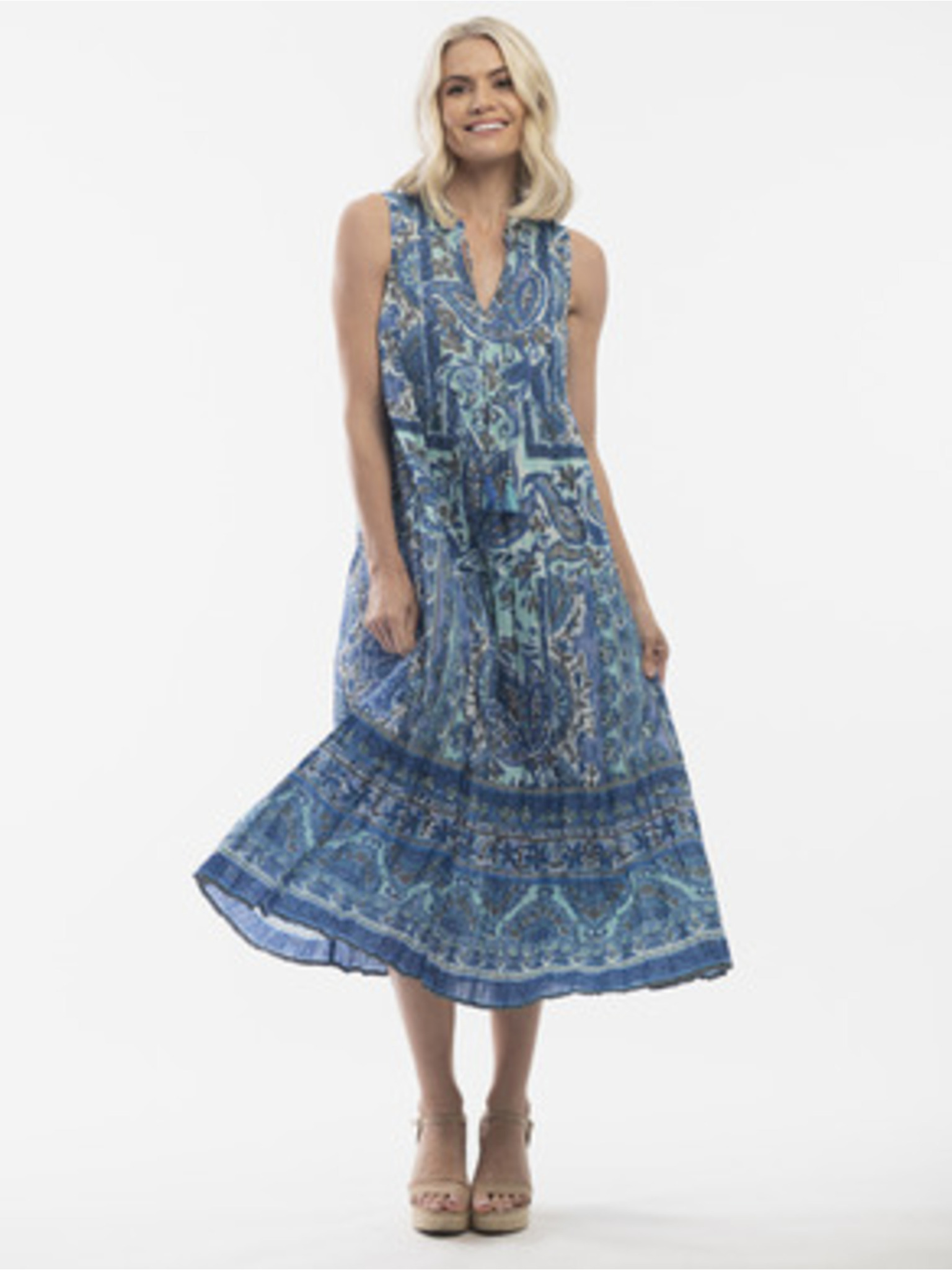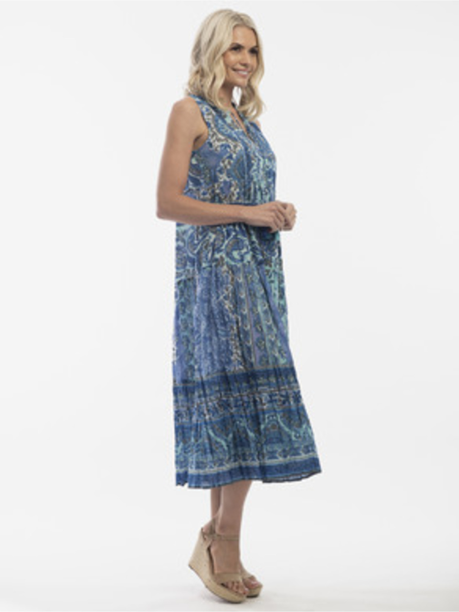 Plava ženska cvjetna haljina s primjesom Orientique lana