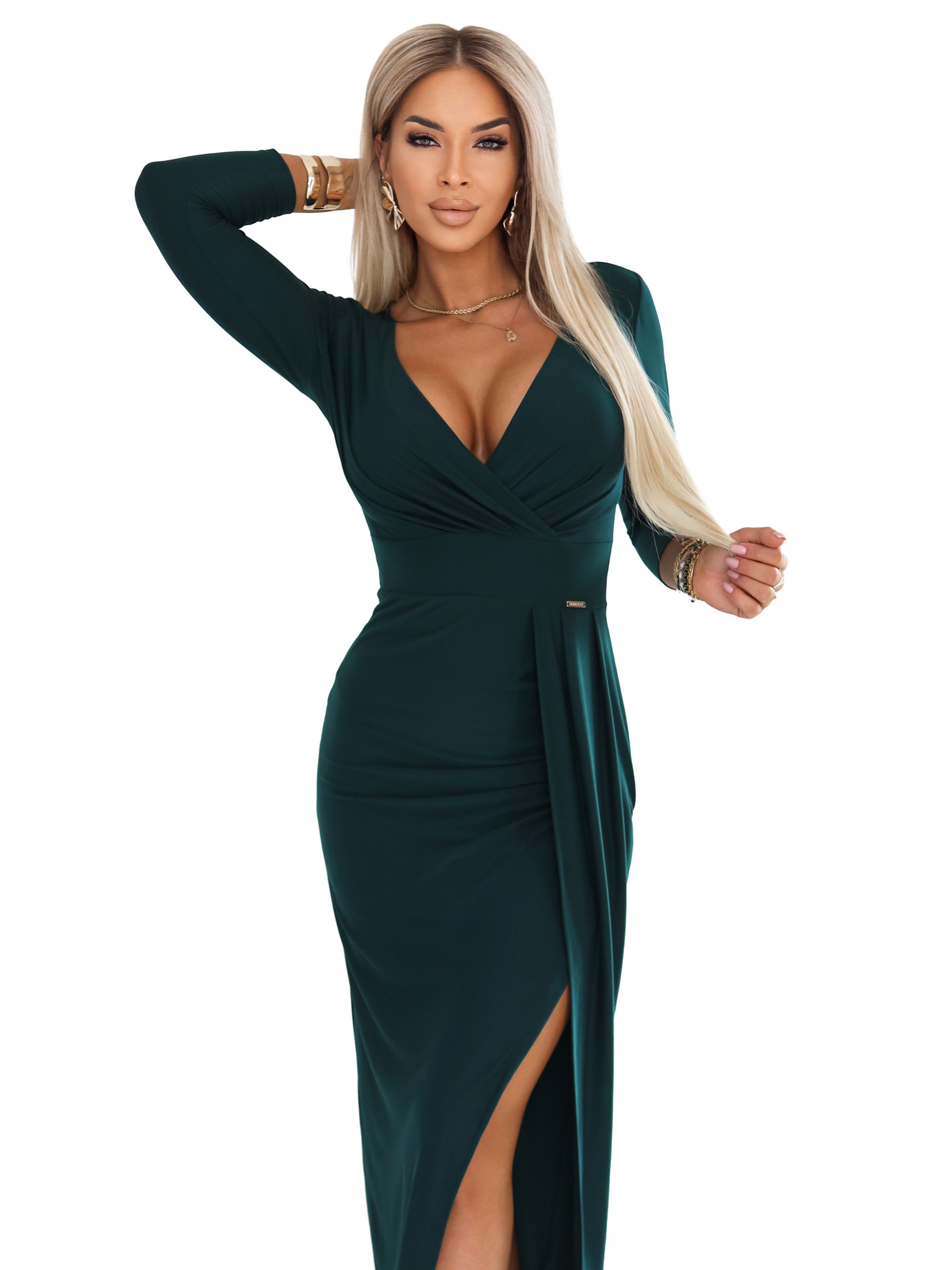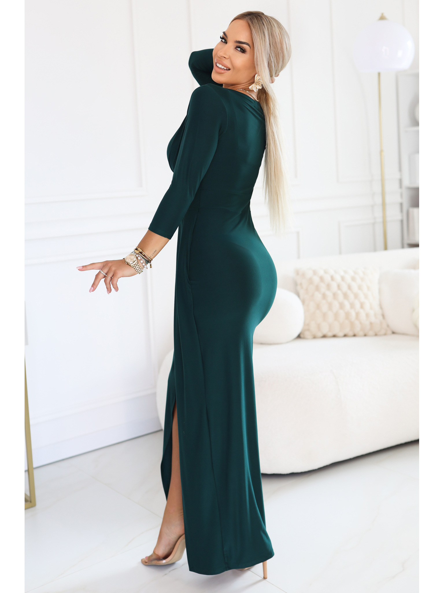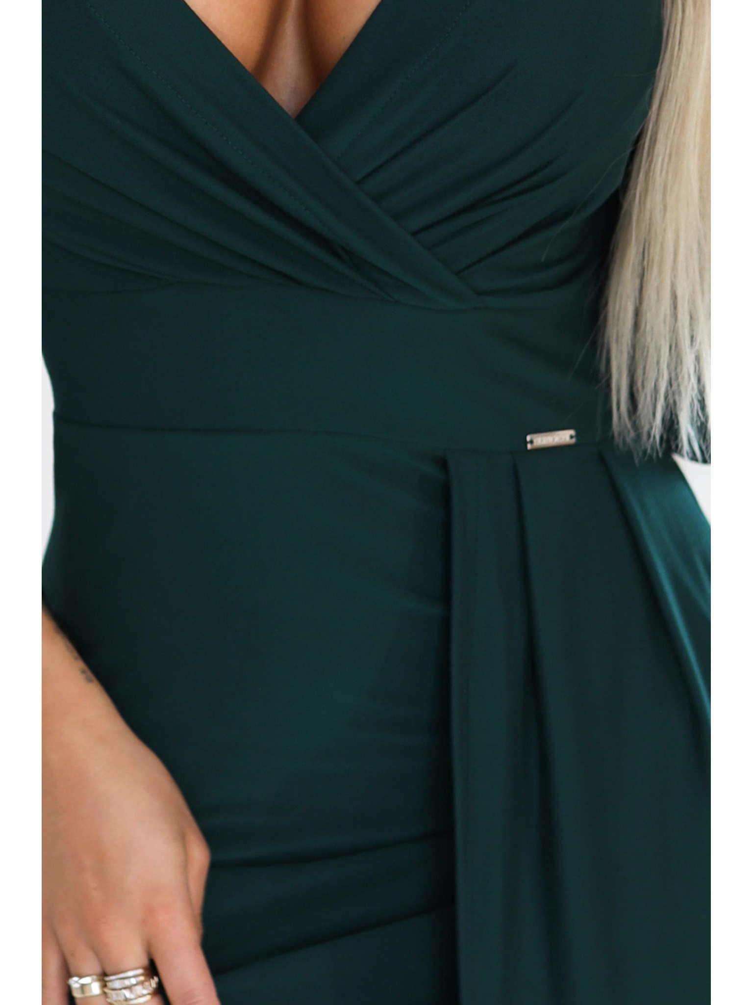 AURELIA duge haljine s prorezom na nogavici i dijamantskim izrezom - bočano zelena