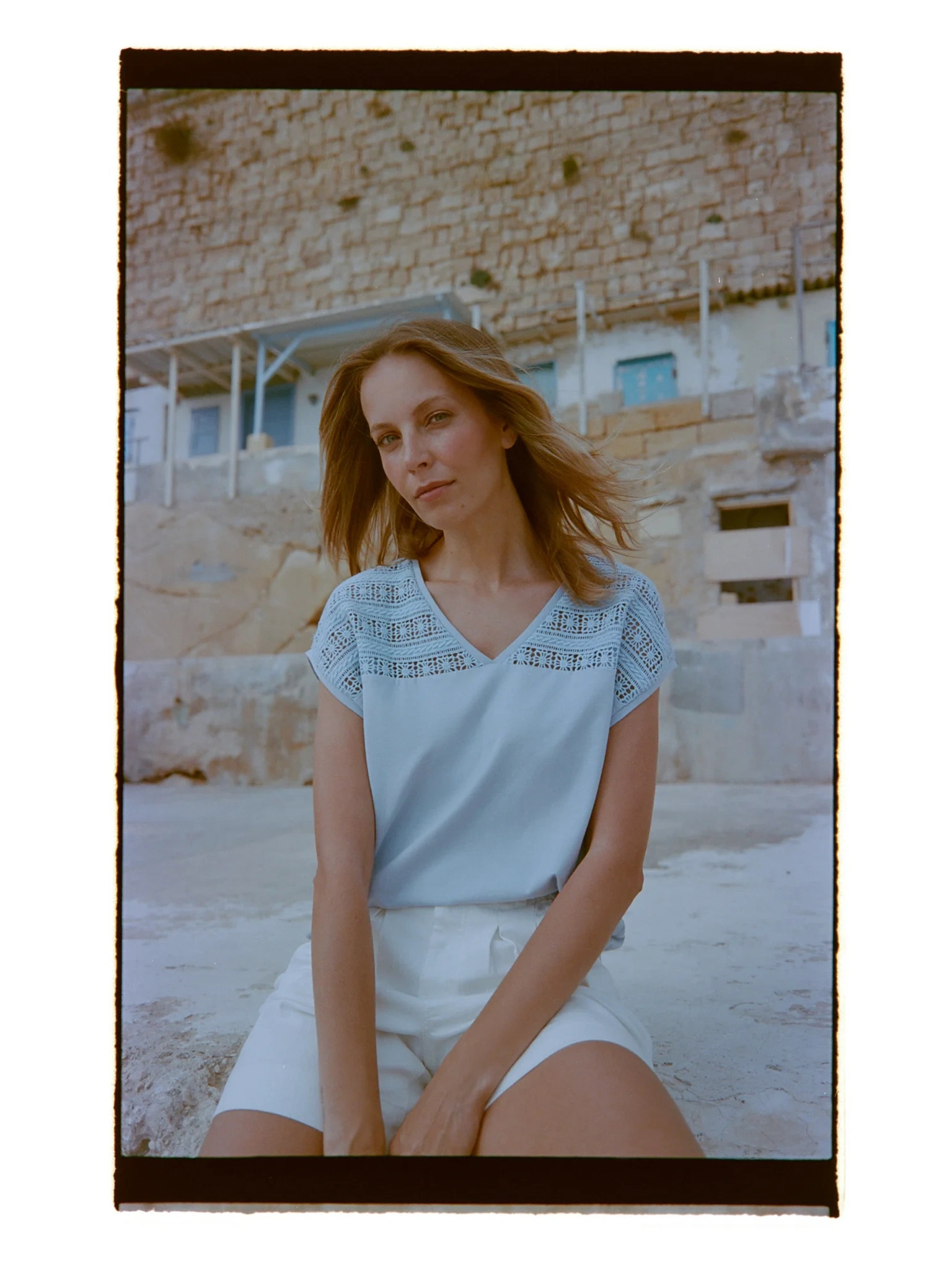 Bijela bluza s V-izrezom Moodo