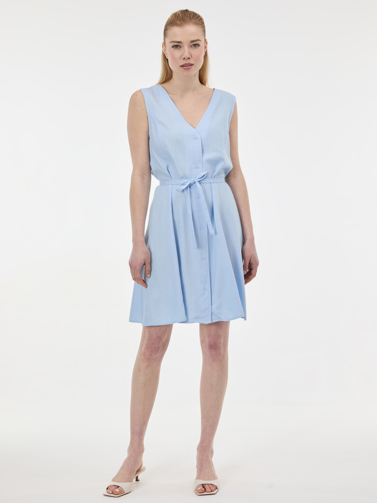 Svjetloplava haljina s pojasom