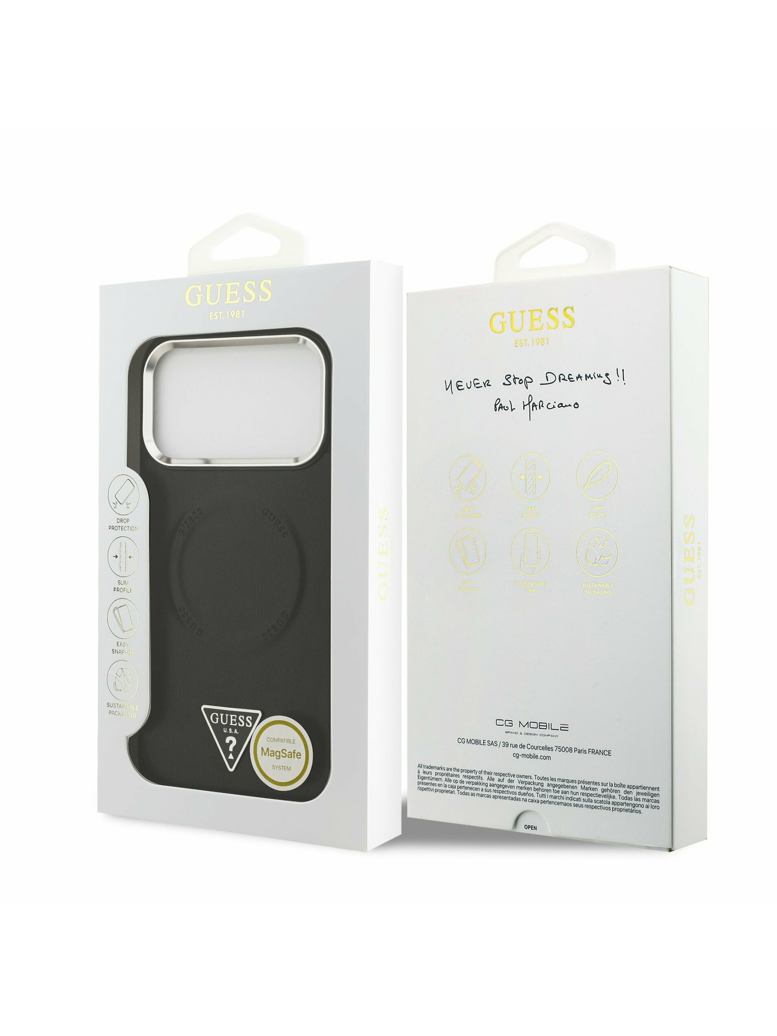 Guess PU Leather Triangle Logo MagSafe Stražnji Kryt za iPhone 17 Pro Max Black